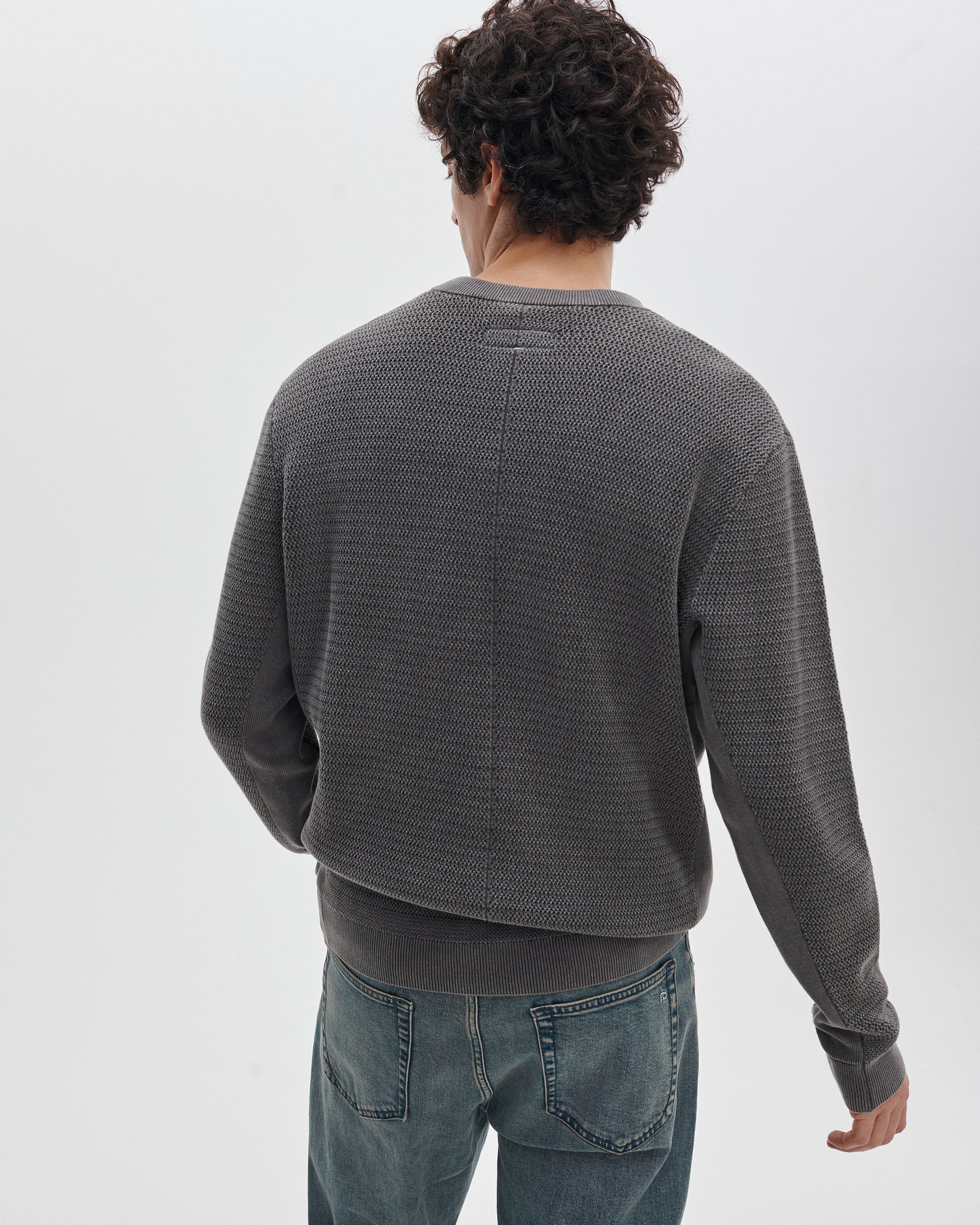 コットン100%素材を洗いをかけたような風合いのクルーネックニットは春のワードローブに欠かせない着回し力抜群の一枚です。ホワイトのインナーを裾から覗かせるレイヤースタイルが今シーズンおすすめの着こなしです。