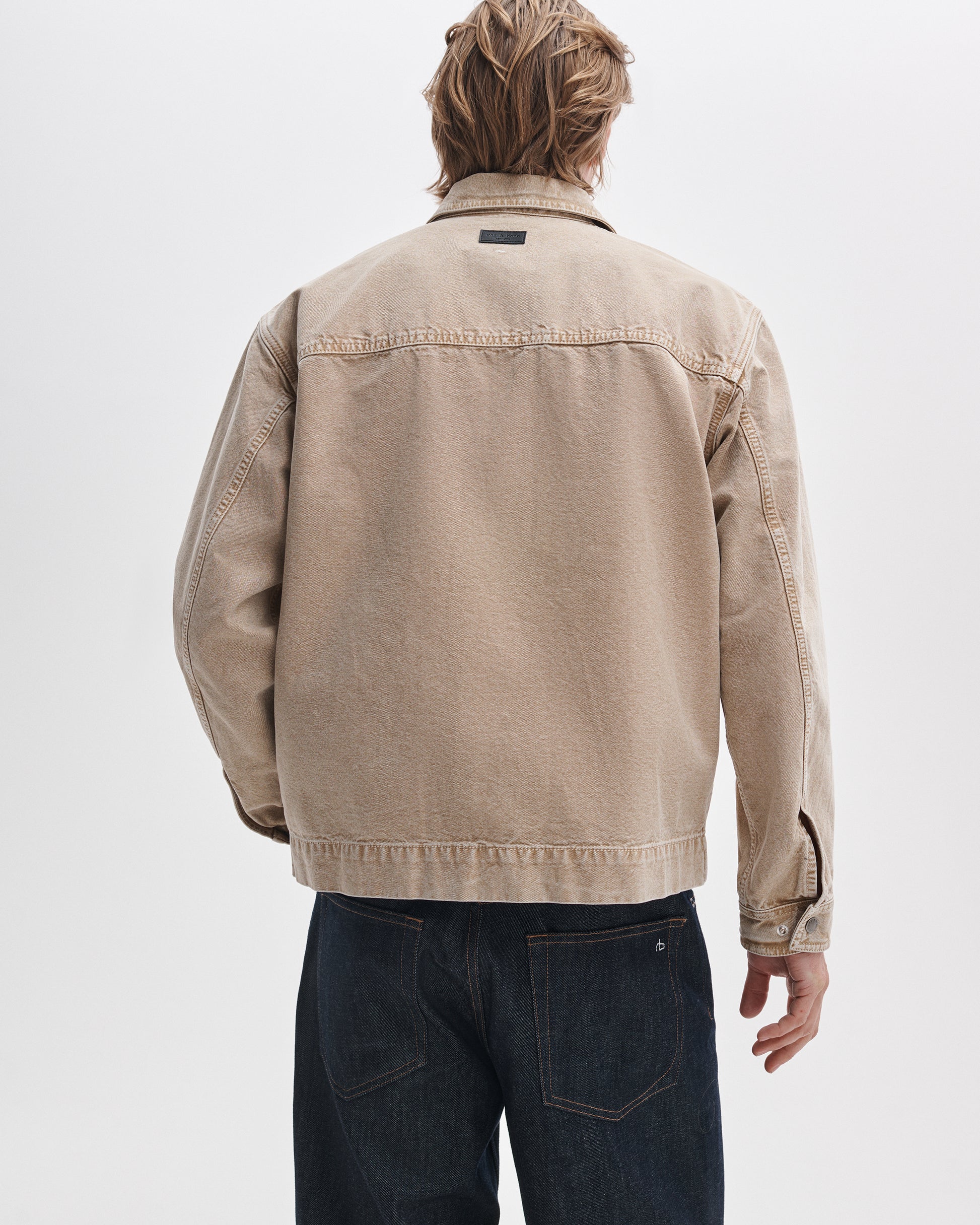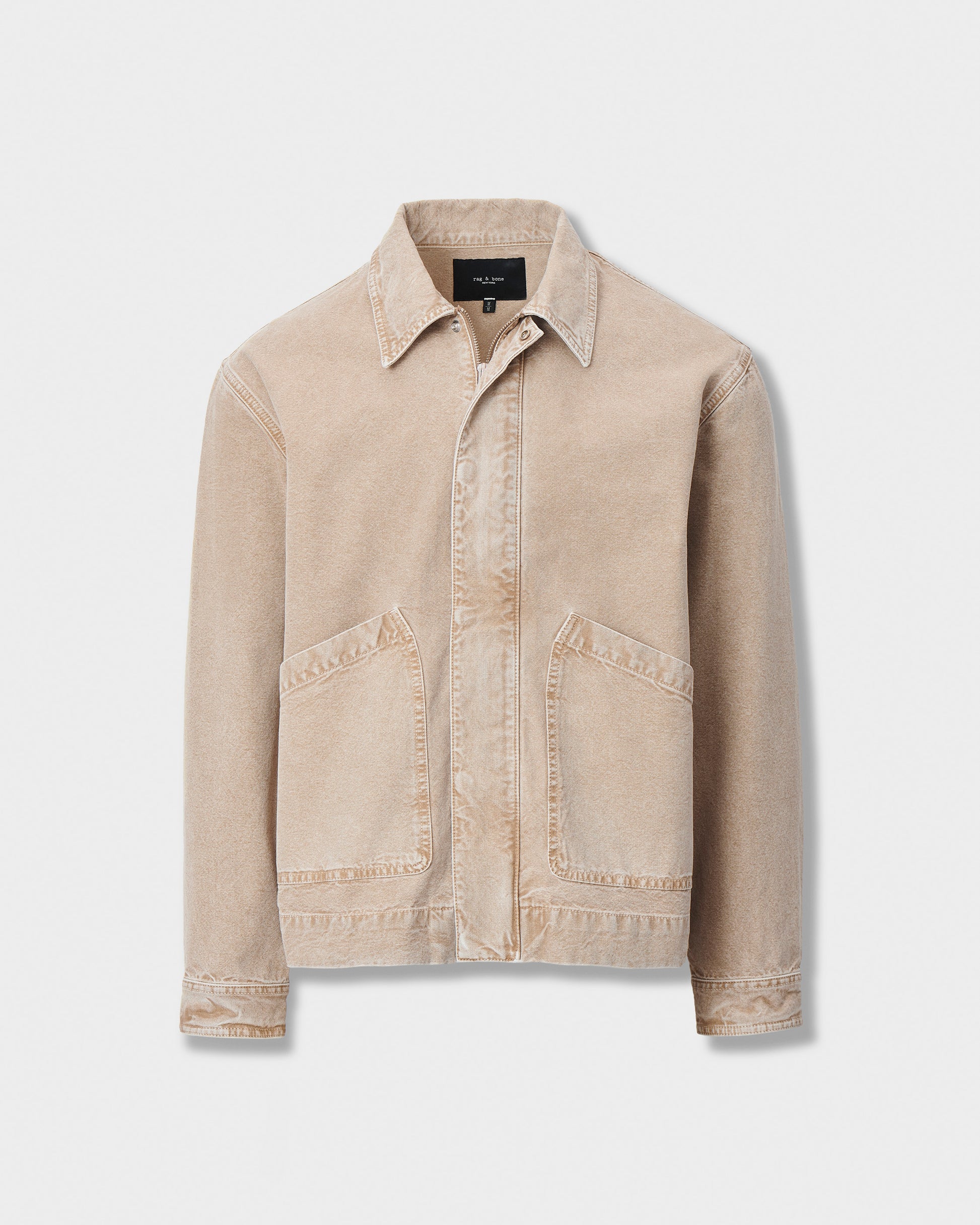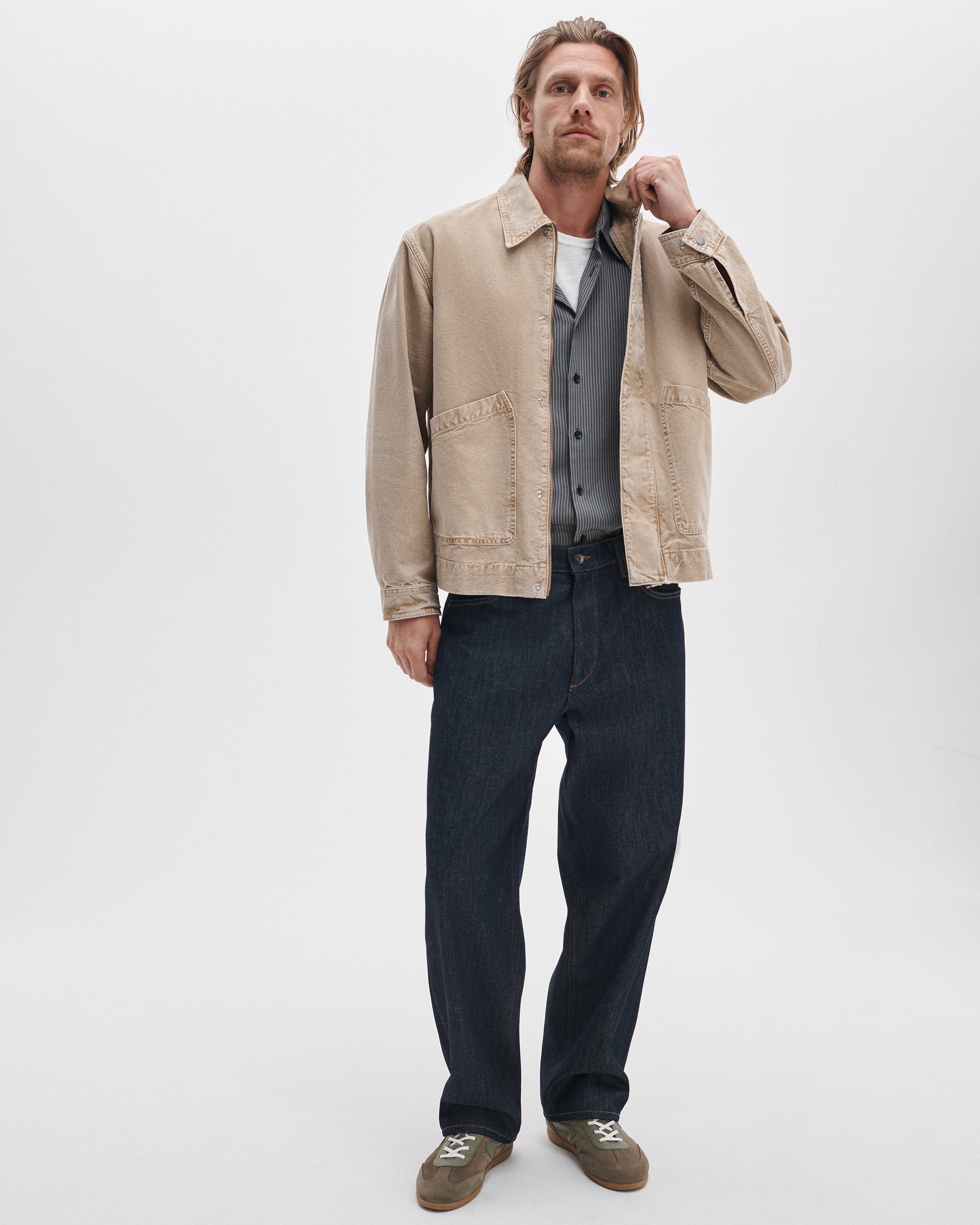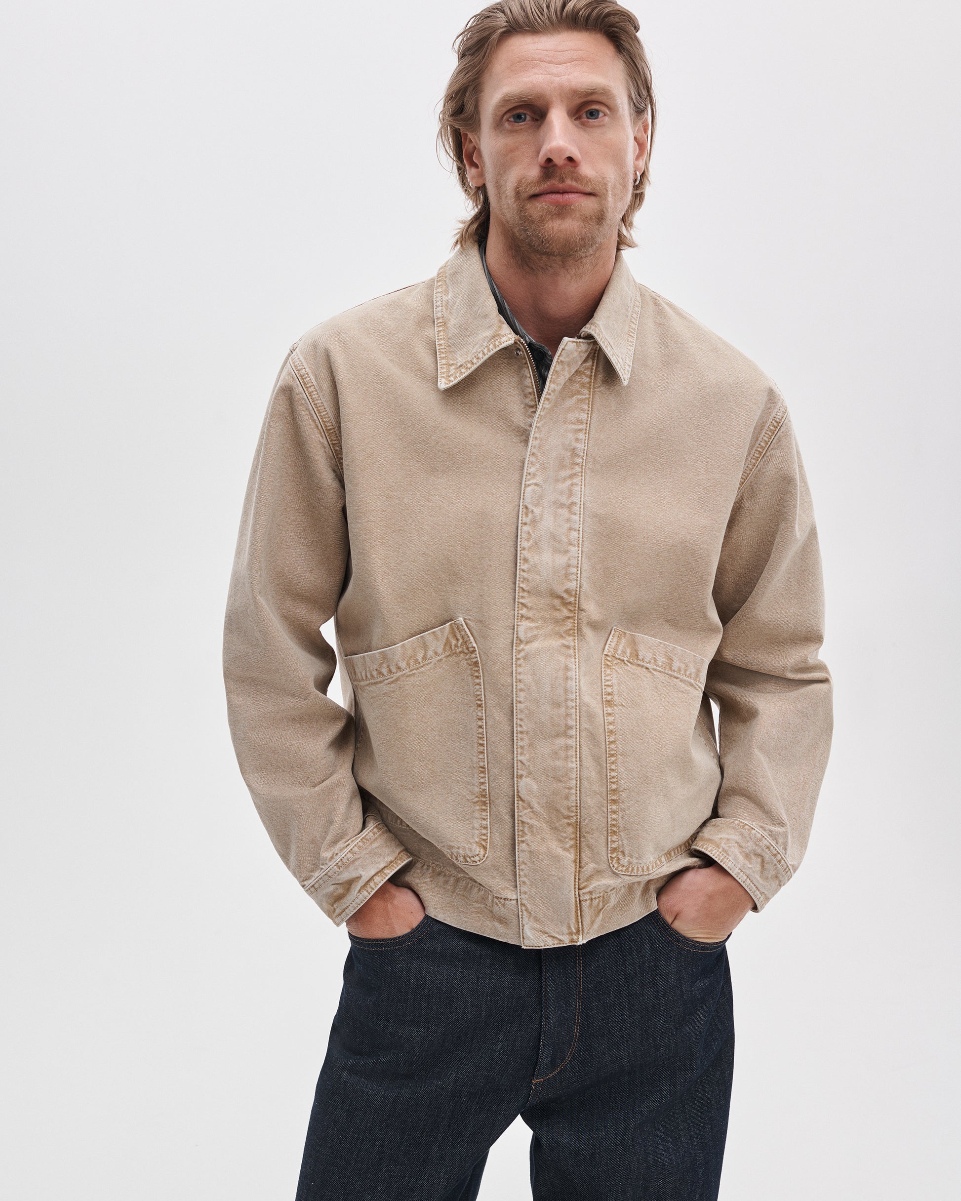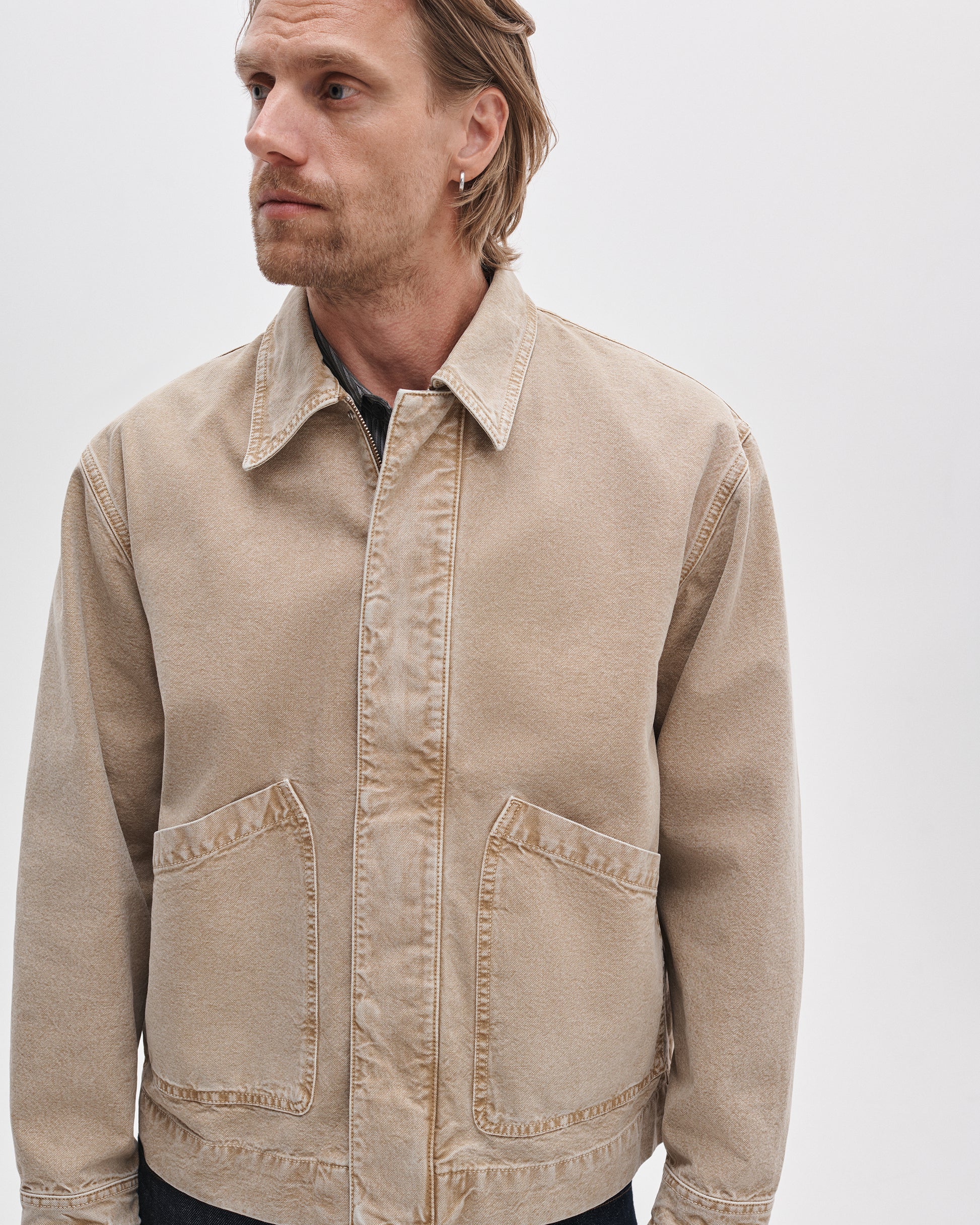 ワークウェアから着想を得たフルジップジャケットはコットンキャンバスに独自のウォッシュ加工を施し、奥行きのある表情と風合いをプラス。