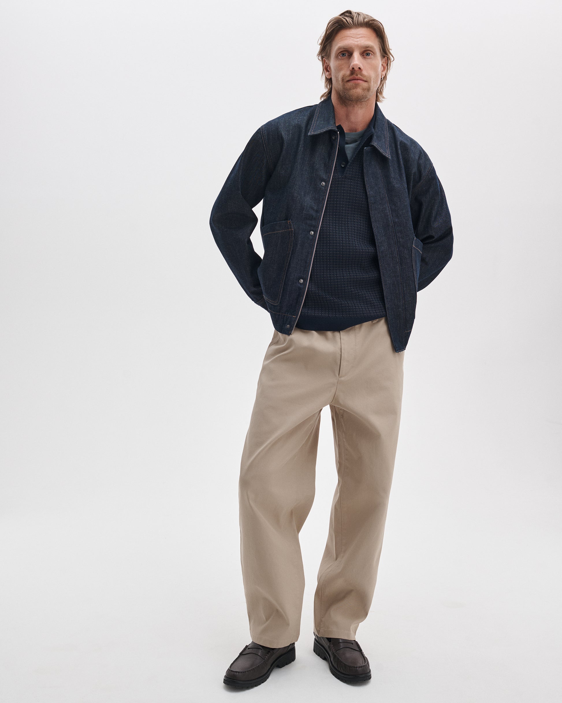 同系色のデニムとセットアップはもちろん、チノとの相性も抜群です。