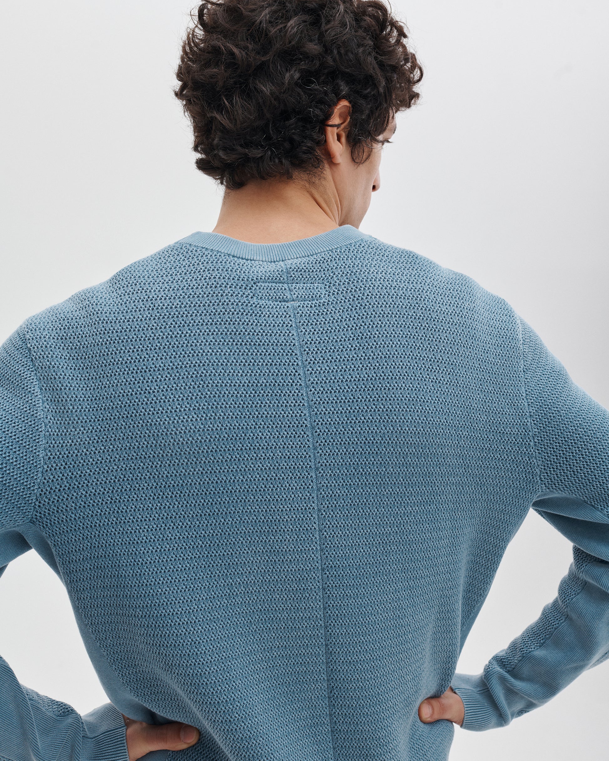 コットン100%素材を洗いをかけたような風合いのクルーネックニットは春のワードローブに欠かせない着回し力抜群の一枚です。ホワイトのインナーを裾から覗かせるレイヤースタイルが今シーズンおすすめの着こなし