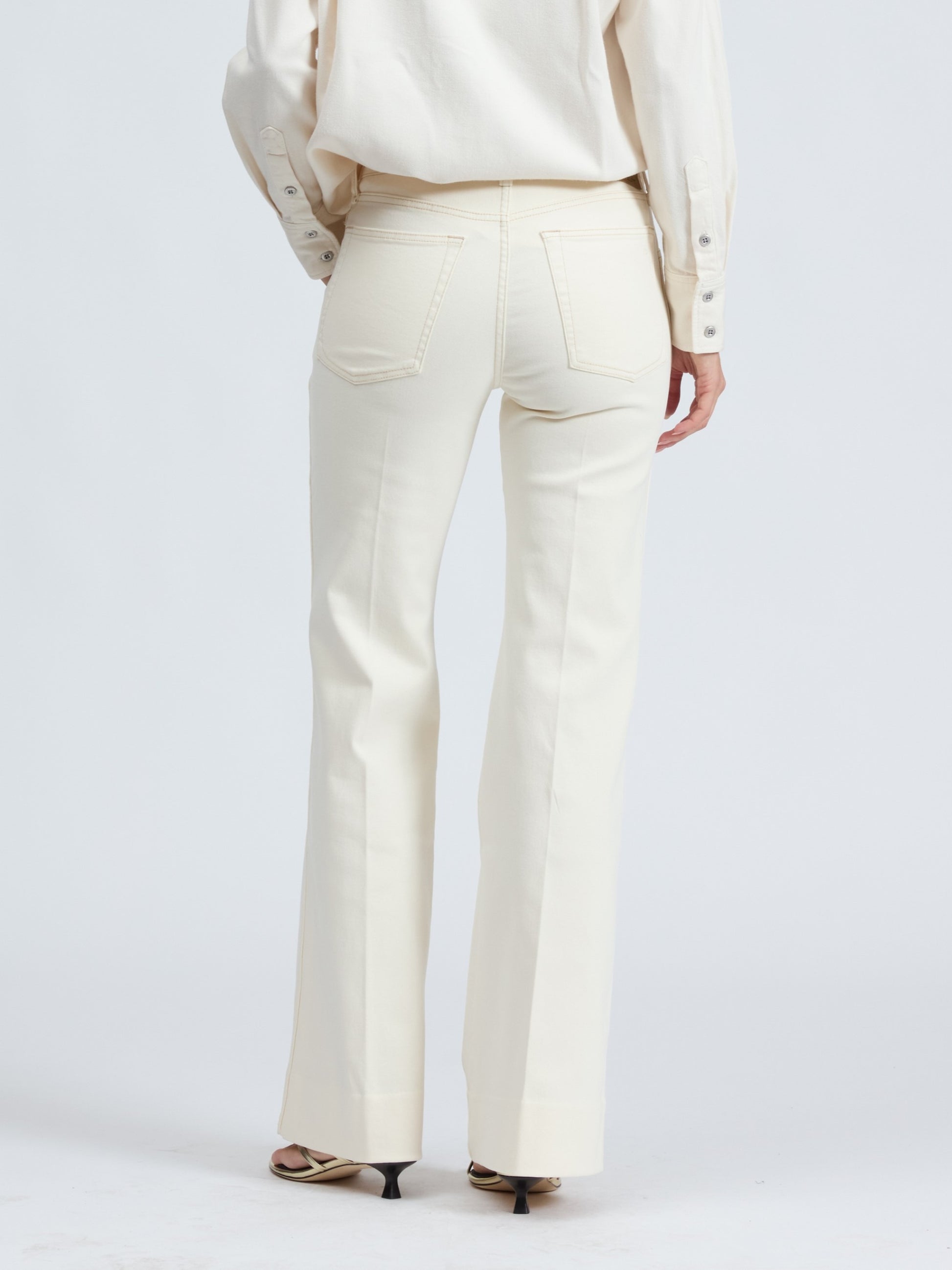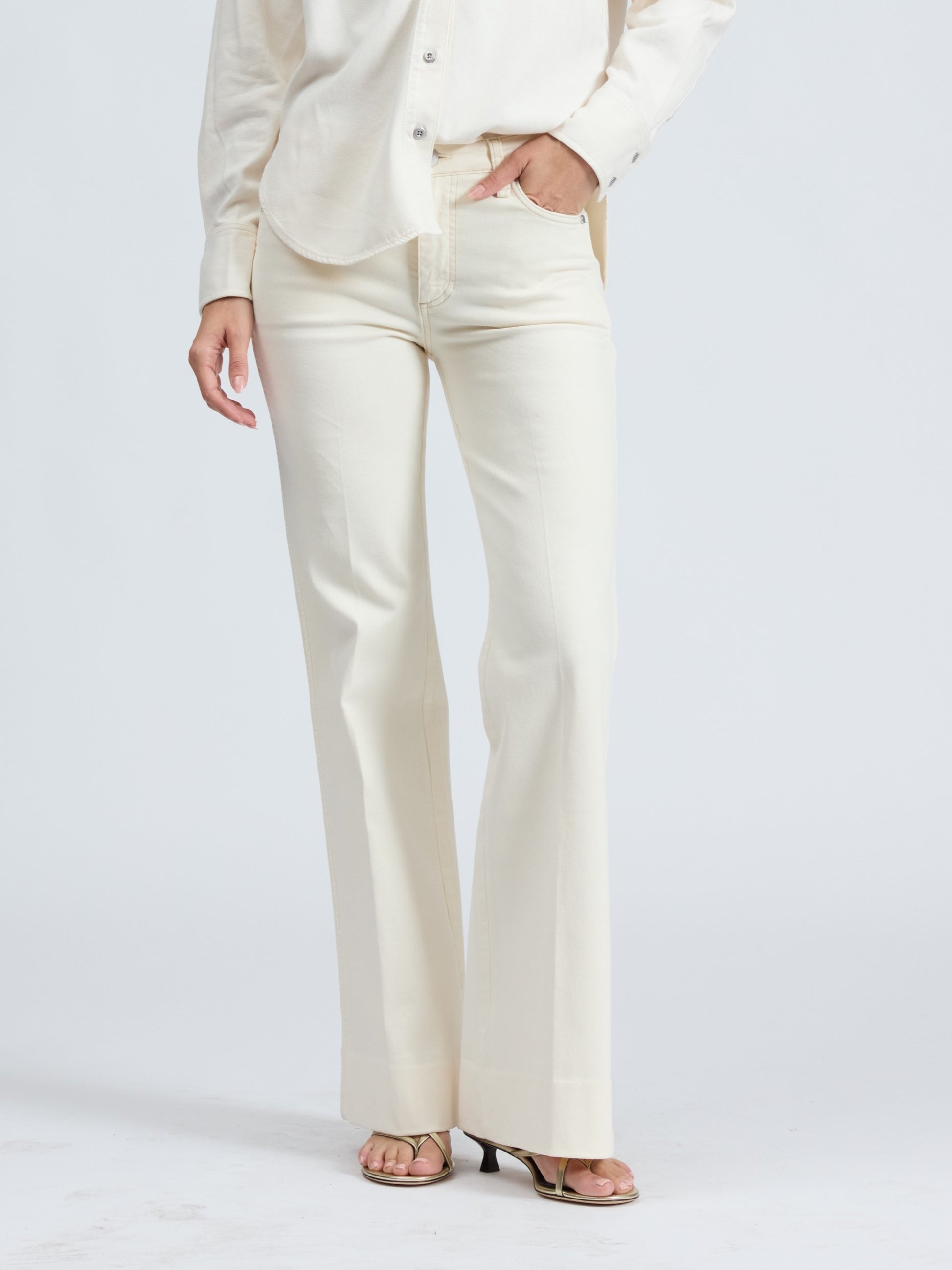 RUBYはミッドライズのフレアジーンズ。太もも周りはフィットし裾にかけて徐々にゆるやかに広がります。ブーツカットより裾幅が広いのが特徴です。