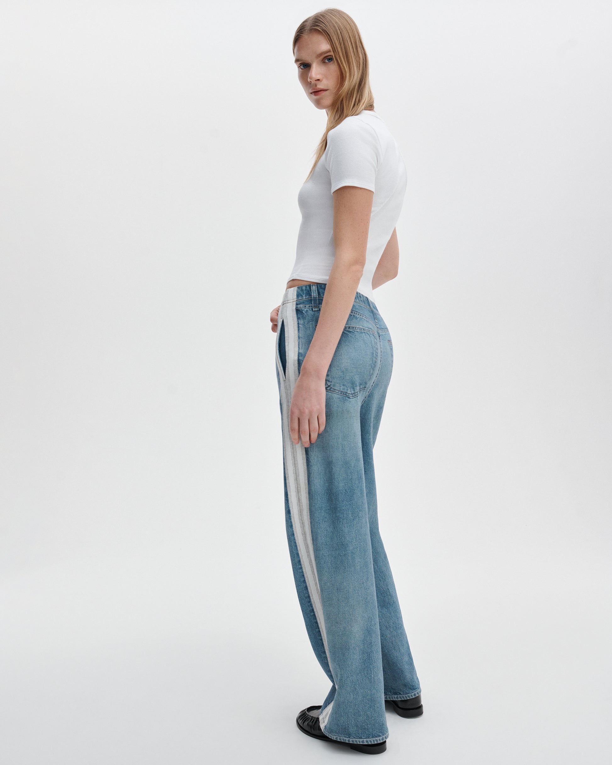 rb Miramar(rbミラマー)は、ブランド独自開発のプリント技術によって、スウェットやサテン生地にクラシックなデニムの質感、ディテールをリアルに再現したコレクション。見た目は本物のデニムさながら、実際の素材は軽量かつ柔らかく、ストレスフリーな着心地を実現しています。