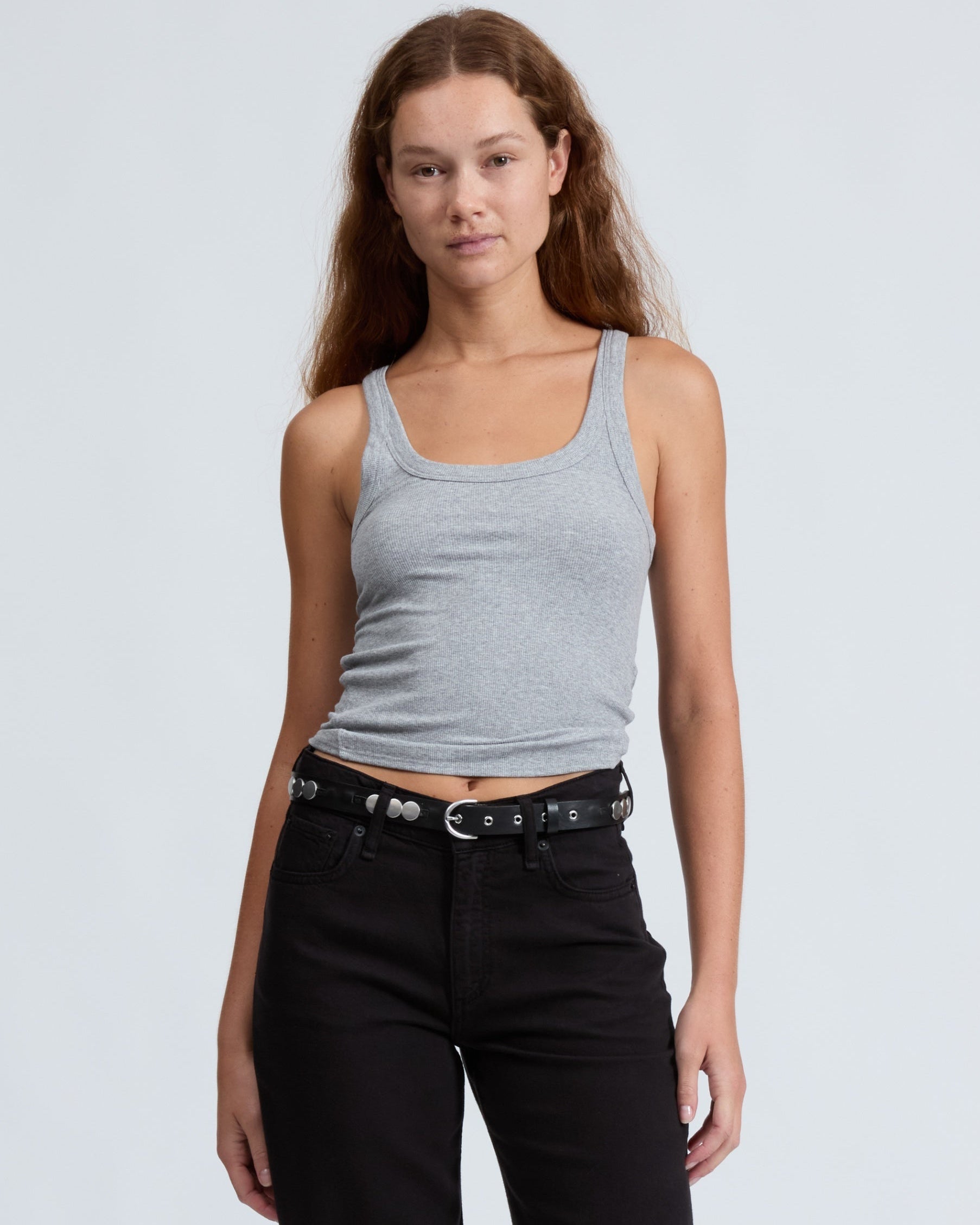 フロントとバックにUネックをあしらった、体のラインを美しく引き立てるスリムフィットのリブタンクトップ。最高級のペルー産オーガニックコットンに、ほどよい伸縮性をプラスして仕立てました。