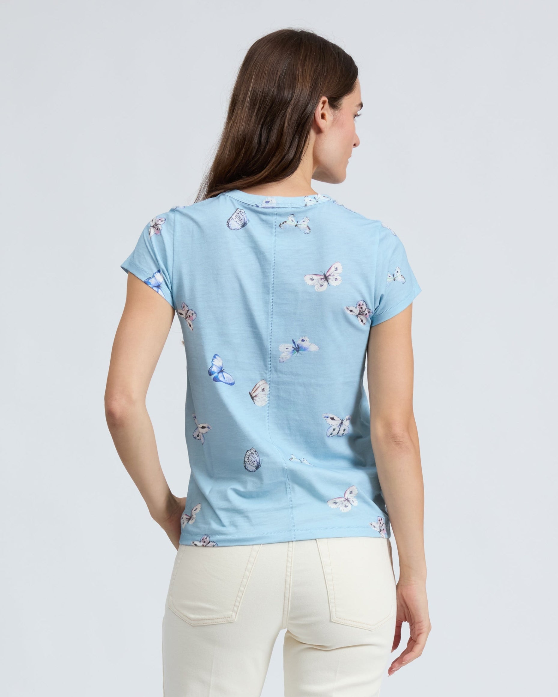 蝶のモチーフが散りばめられています。一点ずつ柄の出方が違う特別さも魅力です。