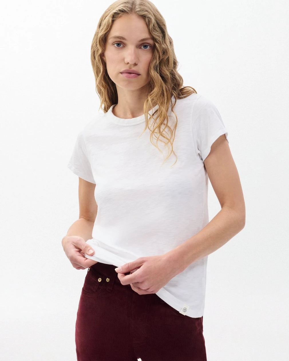 柔らかな質感の肌触りが心地良いスリムフィットの定番のクルーネックTEE。