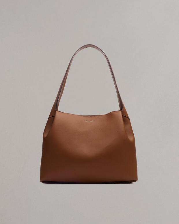 詳細・しなやかなカーフレザー・中央にジッパー付き仕切り・隠しマグネット留め具・底に金属製の脚・中国製