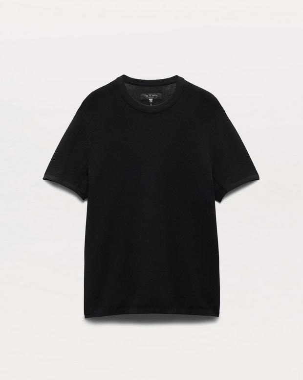 rag & boneの定番アイテム。ニット素材のショートスリーブTシャツは、通気性があり、驚くほど軽量なコットンブレンド素材で編まれています。ヴィンテージ風の編み目が特徴で年間を通して快適に着用できるアイテムです。