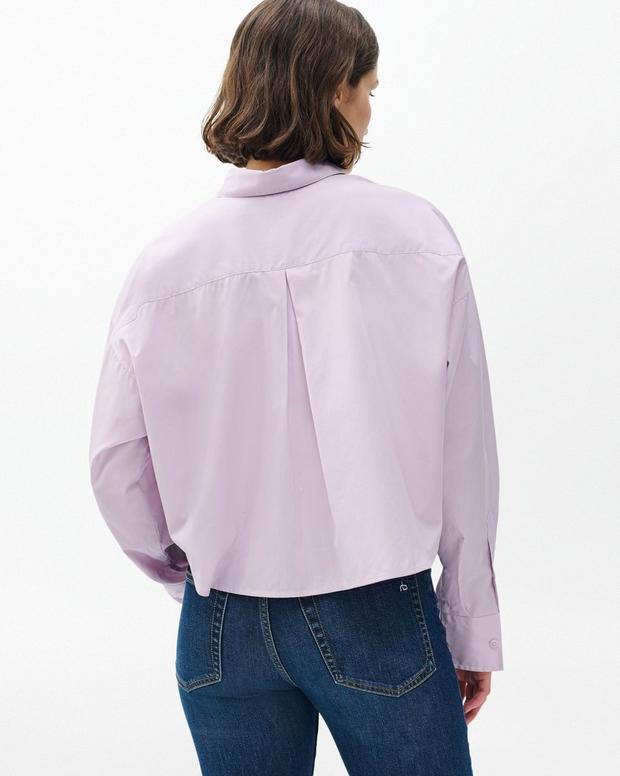 ・ハリのあるコットンポプリン素材を使用したクロップドボタンアップシャツ
