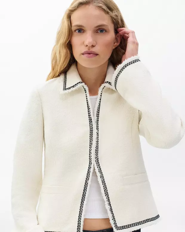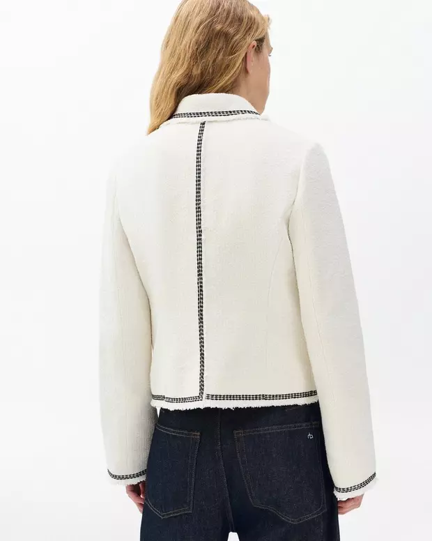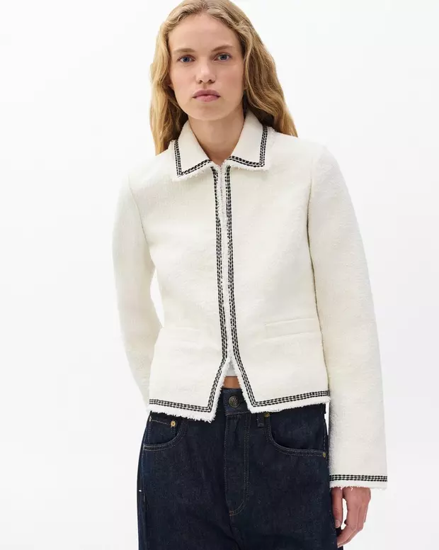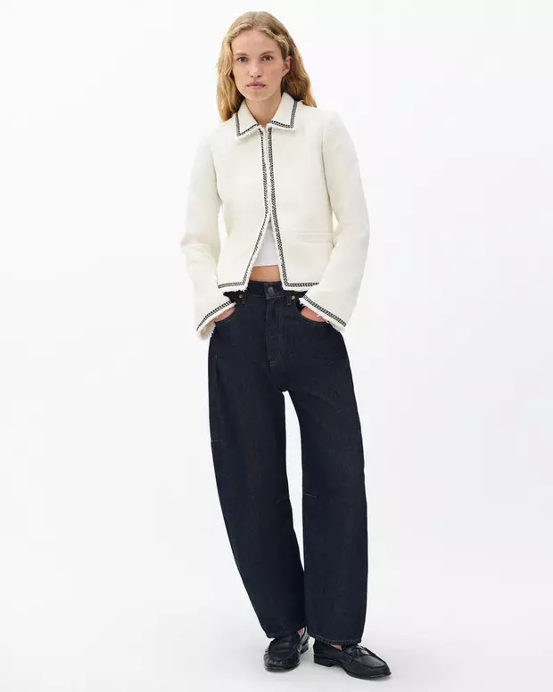 全体的にあしらわれたコントラストステッチがシンプルなデザインに立体感をプラスします。デニムやスラックスなど様々なボトムと合わせやすく着回しの効くジャケットです。