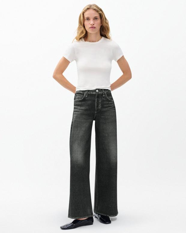 rag & bone で最も人気のあるポンテ素材にデニムプリントを施したワイドパンツ。ポンチ素材は光沢感があり、ストレッチ性が高くシワになりにくいのがポイントです。