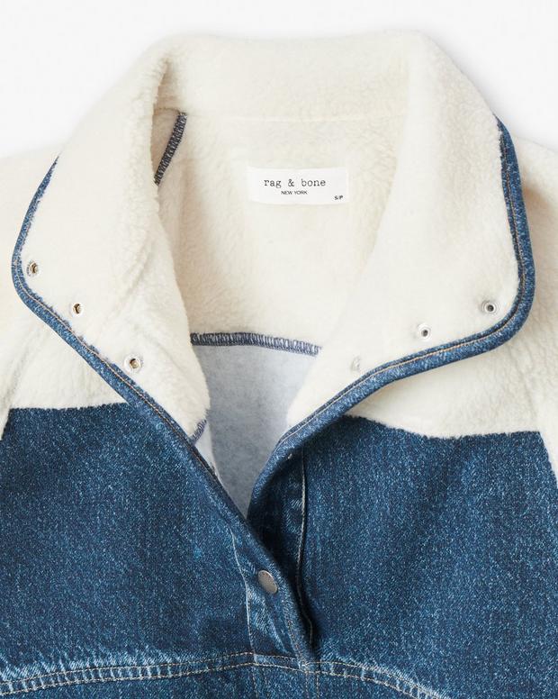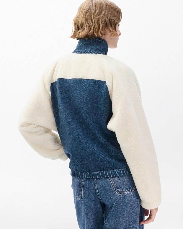 ・襟内側、前身頃、バックヨーク部分、袖にシェルパ素材を使用