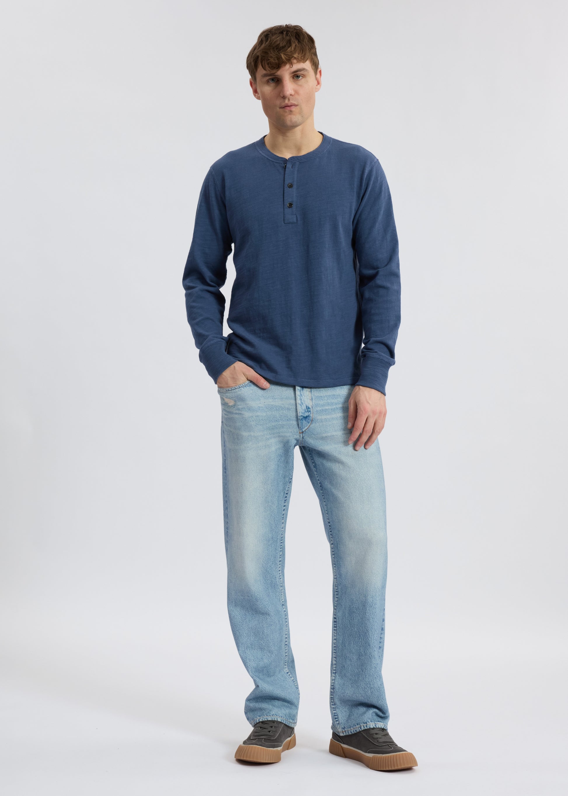FIT4はストレートフィットです。伝統的なアメリカのストレートデニムをオマージュしたシルエット。ヒップ回りと太もも回りがゆったりとしています。