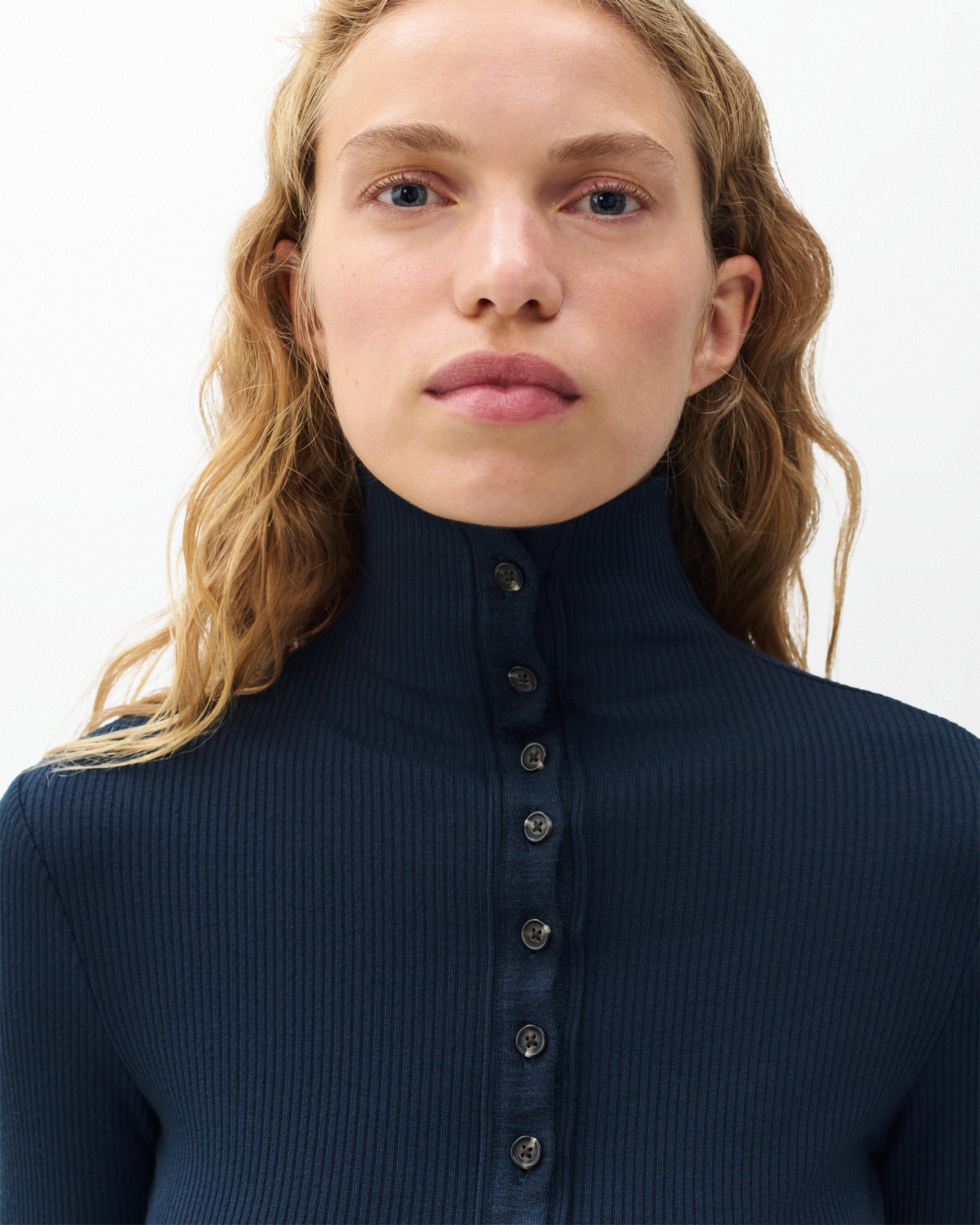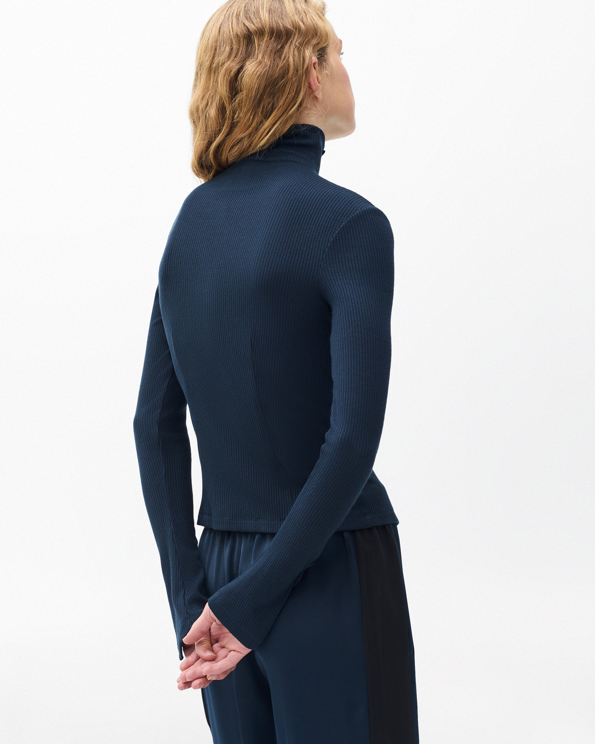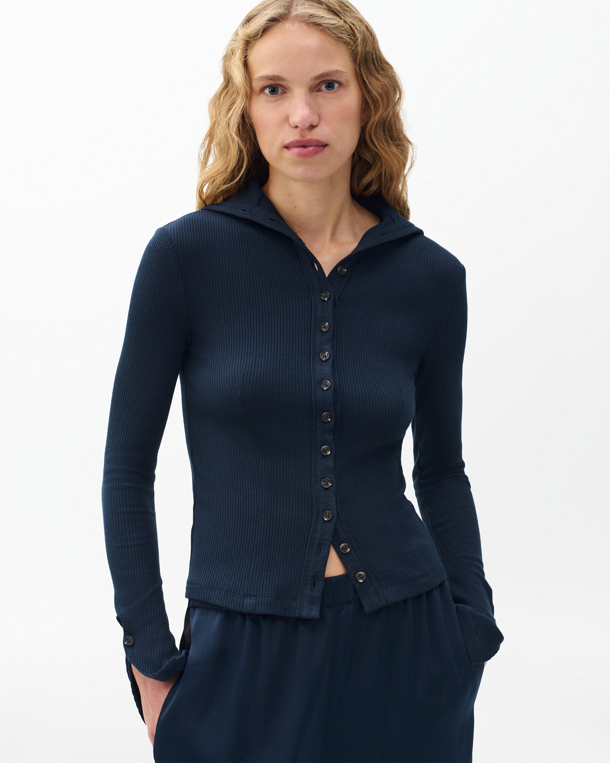 長めの袖はスリットが入っていてリブ加工との相乗効果で腕が長くすっきり見えます。