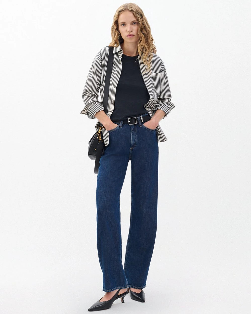 ブランドの象徴的なディテールであるレールロードステッチが施されています。