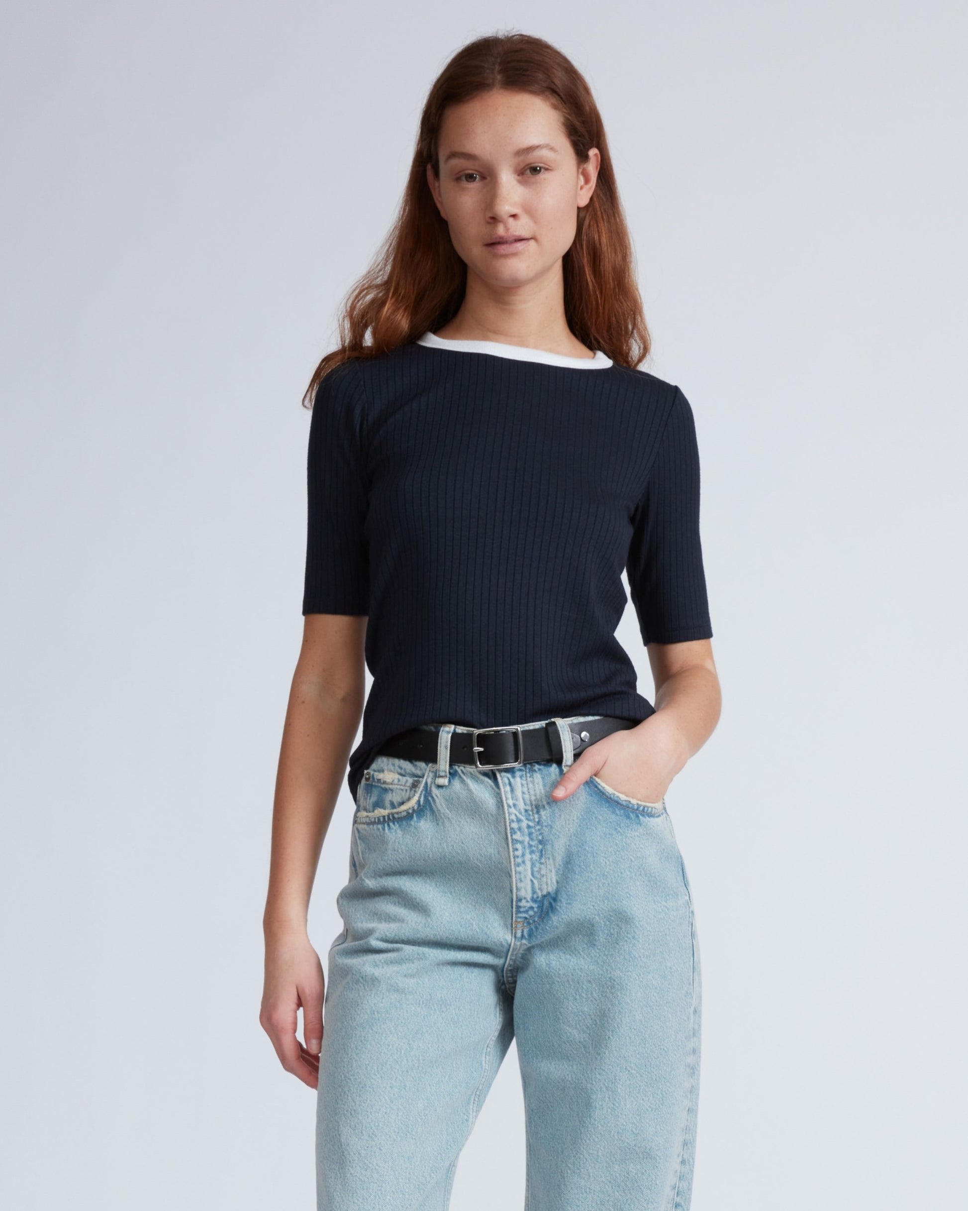 ・レーヨン混紡で編んだ非常に柔らかい肌触りのハーフスリーブT