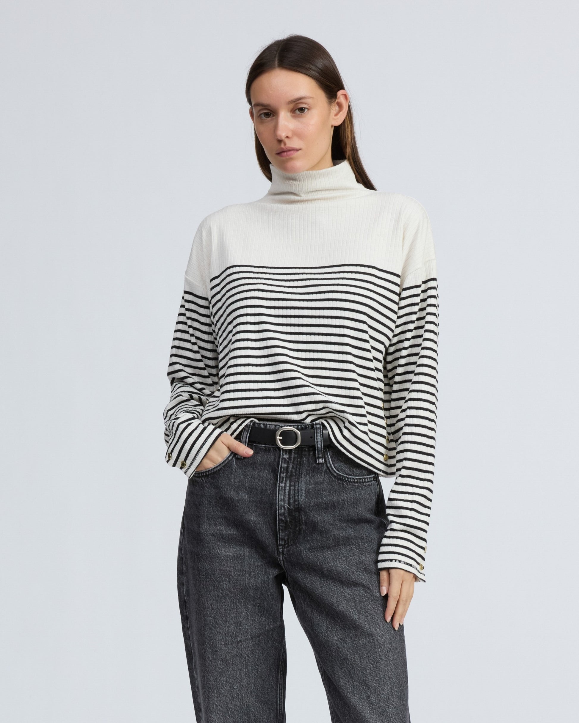 ザ ニット リブ ストライプ Tネック - BEGMT