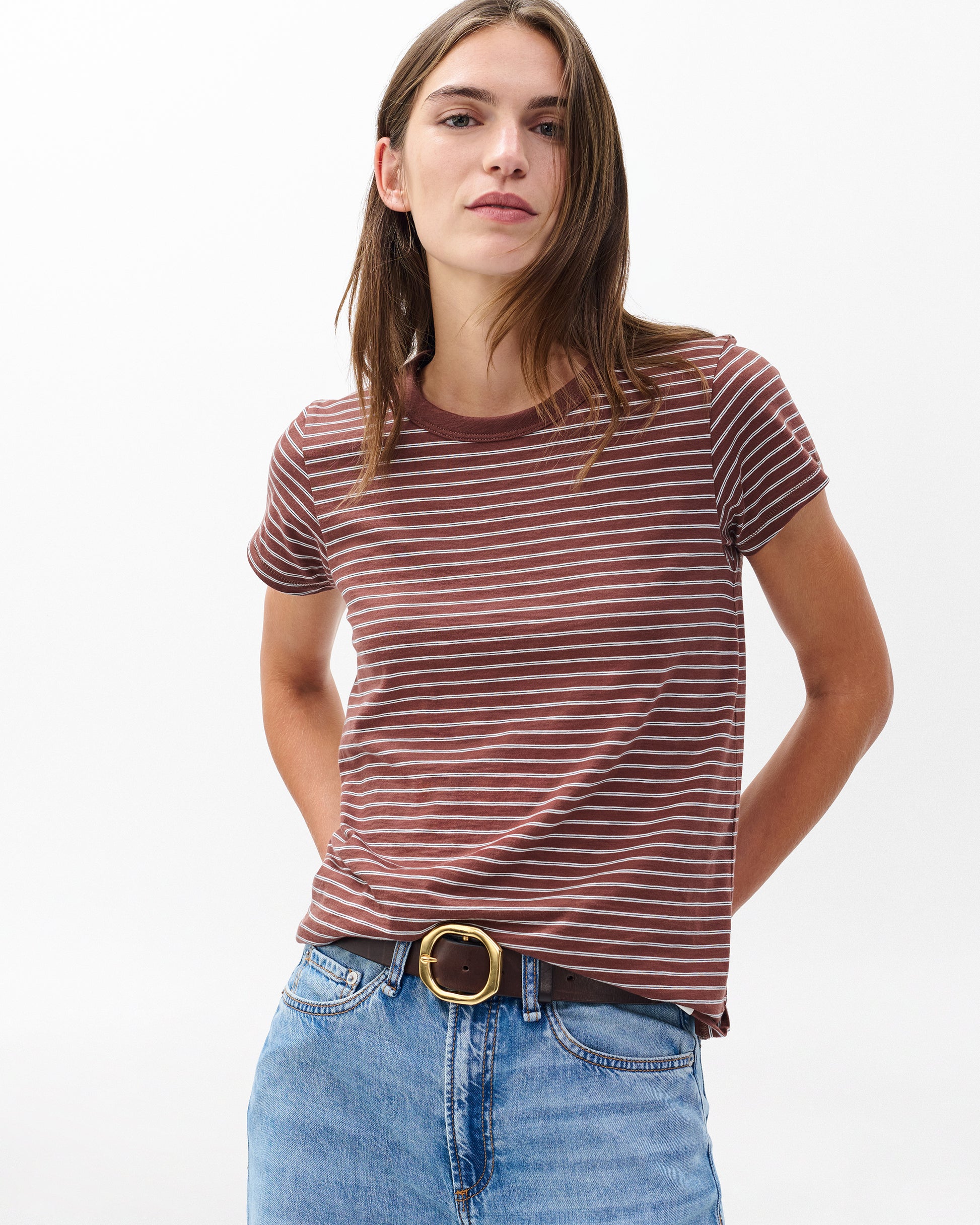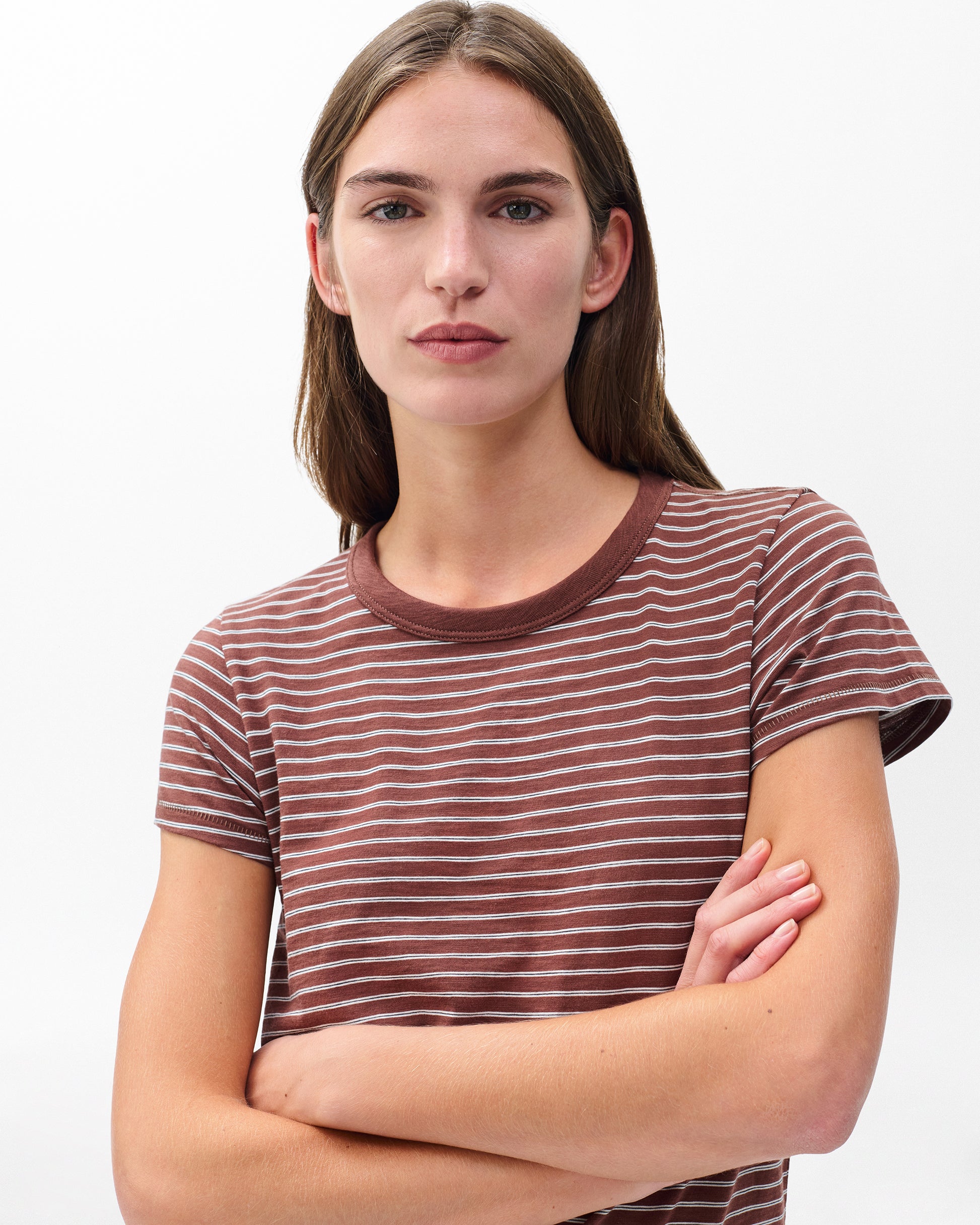 柔らかな質感の肌触りが心地良いスリムフィットの定番のクルーネックTEE。