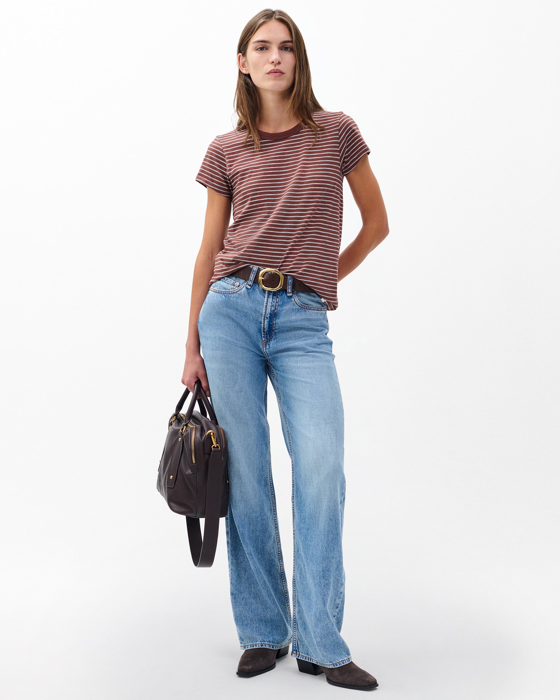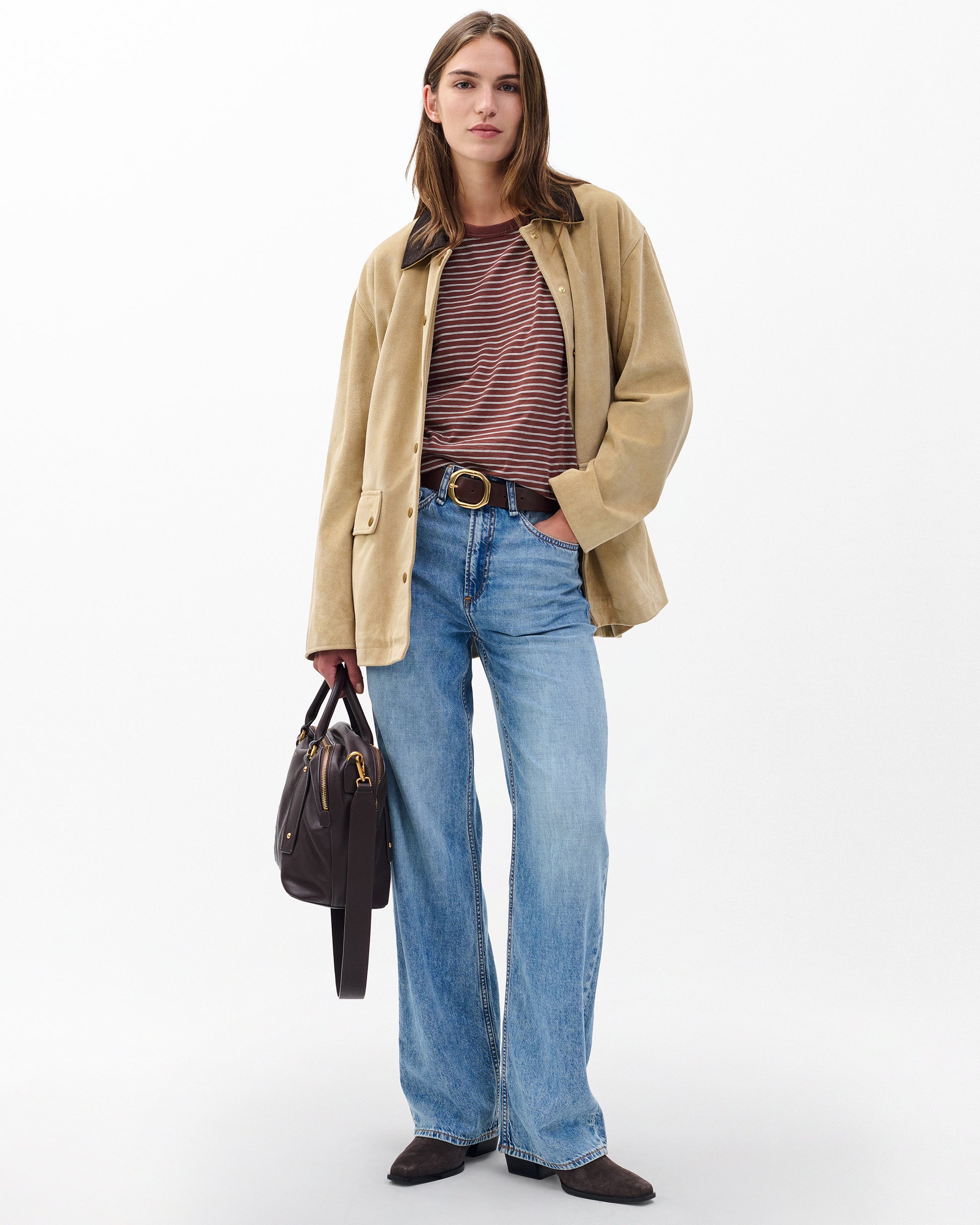 ブランドの象徴的なディテールであるレールロードステッチが施されています。