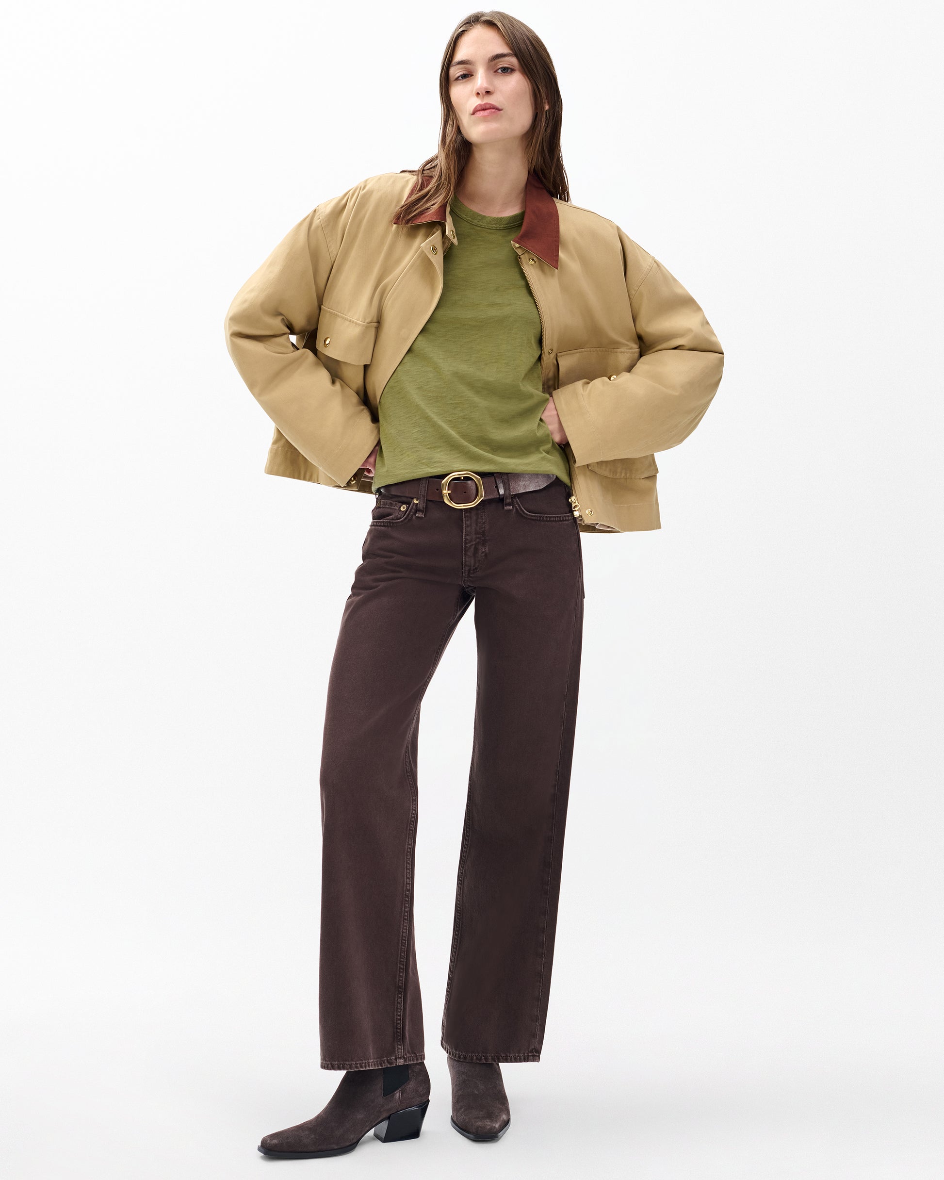 ブランドの象徴的なディテールであるレールロードステッチが施されています。