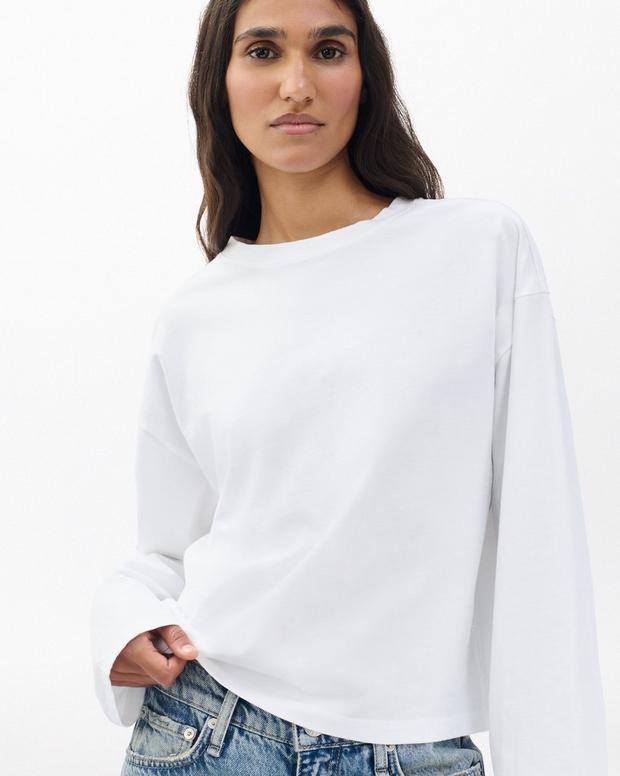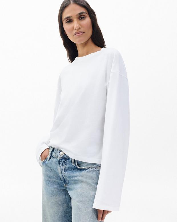 柔らかいペルー産コットンで作られた毎日使いたくなるリラックスシルエットの長袖Tシャツです。身幅も袖幅も広いデザイン。トレンド感のある丈感もポイントです。