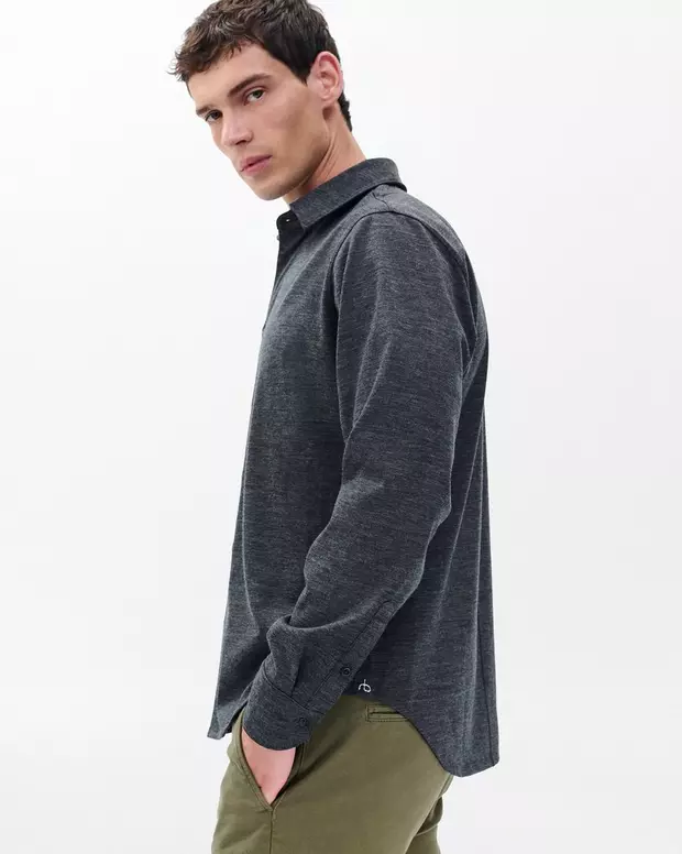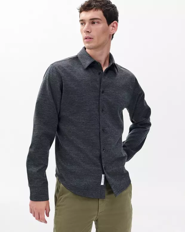 ニットシャツという素材ならではの柔らかさと伸縮性を備え、どんなシーンでも快適に着用できます。高い保温性と透湿性を備えたメリノウールを採用し、寒い時期にはインナーとしても活躍します。是非お気に入りのコートと組み合わせてください。