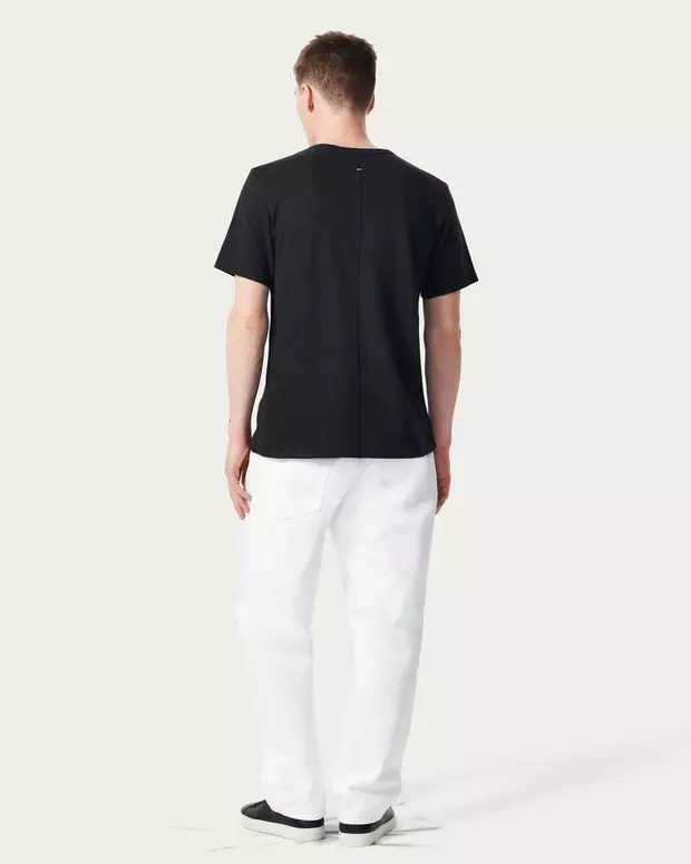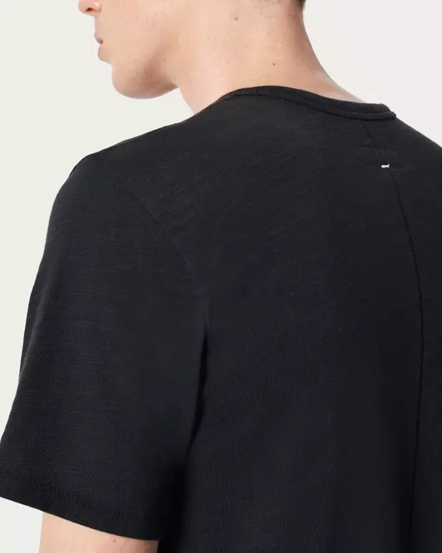 ペルー産のスラブコットンジャージーで作られた定番のクルーネックTシャツは製糸する時に撚りをしっかりかけて細くした部分と撚りをあまりかけずに太くした部分を作ったスラブ糸を使用しているため、生地に凹凸が生まれヴィンテージのような風合いとナチュラルな素材感が特徴です。