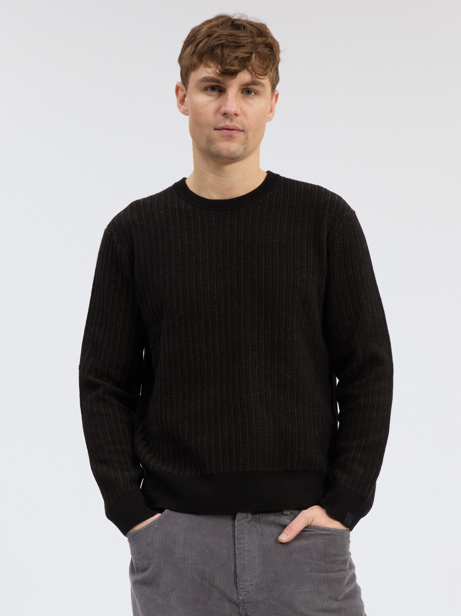 クラシックなデザインのクルーネックセーター。ホワイトのTシャツやシンプルなシャツと合わせてレイヤースタイルも楽しんでいただけます。