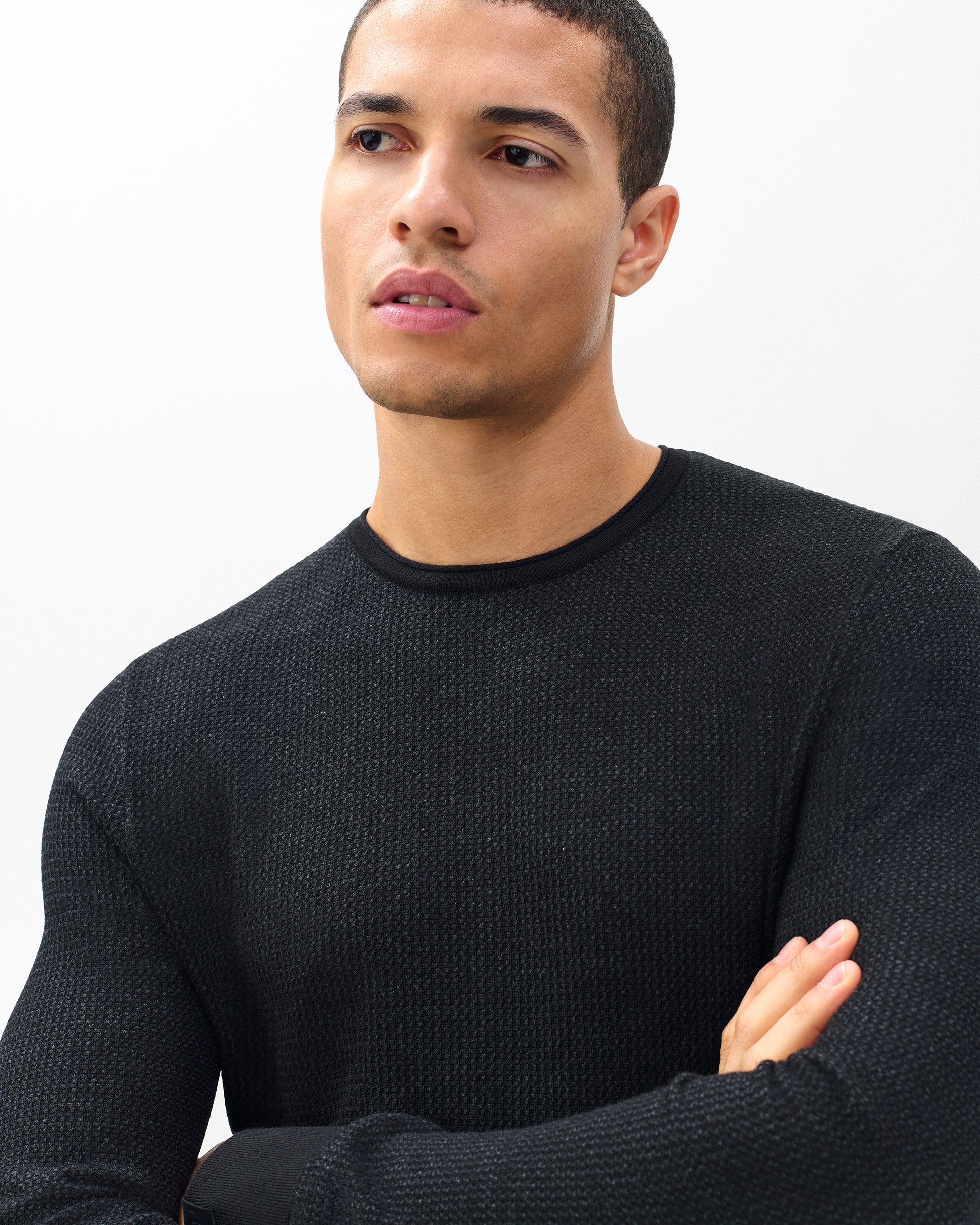 軽やかな着心地のスリムフィットセーターは一年を通して着用できます。