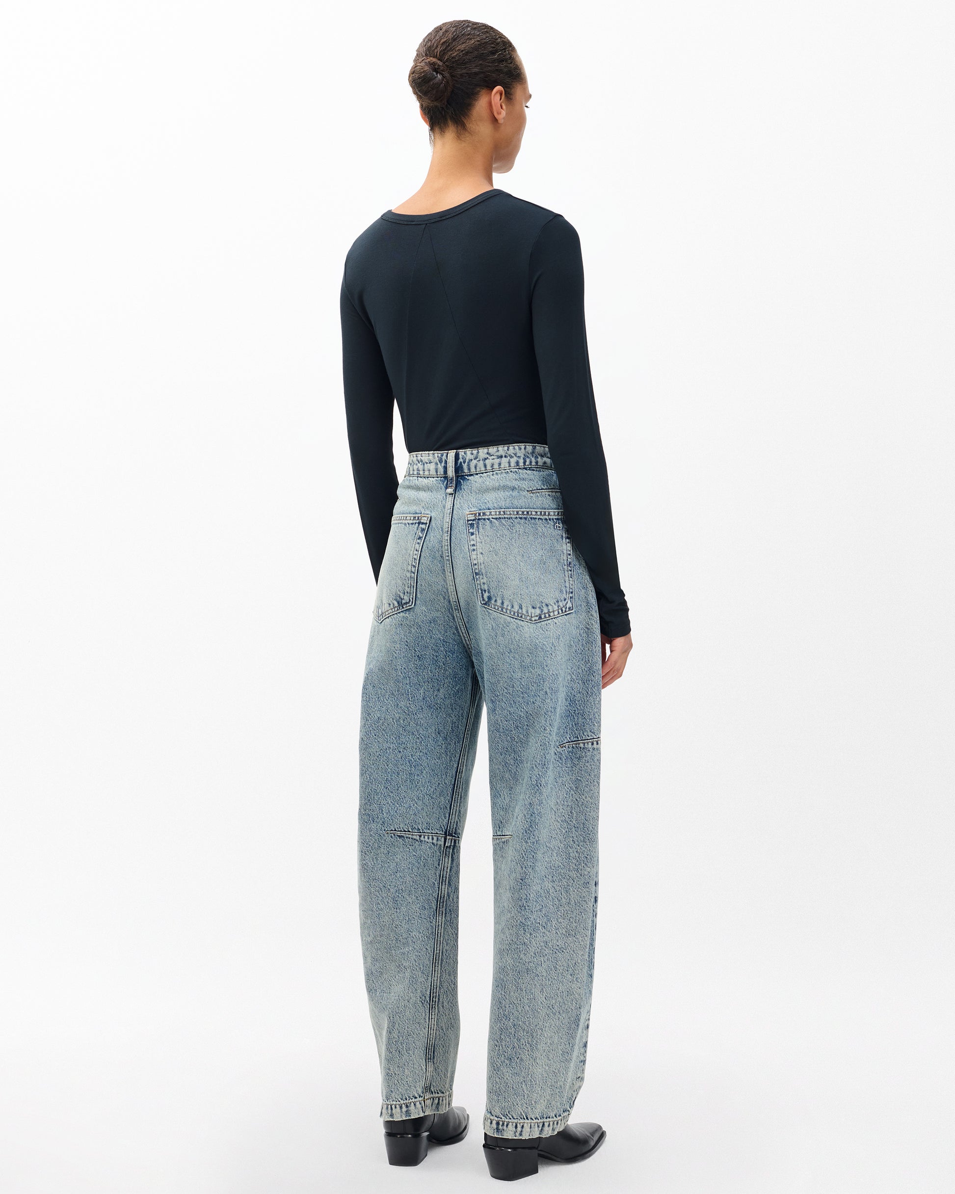 ・ゆったりとしたルーズフィットのバレルシェイプ