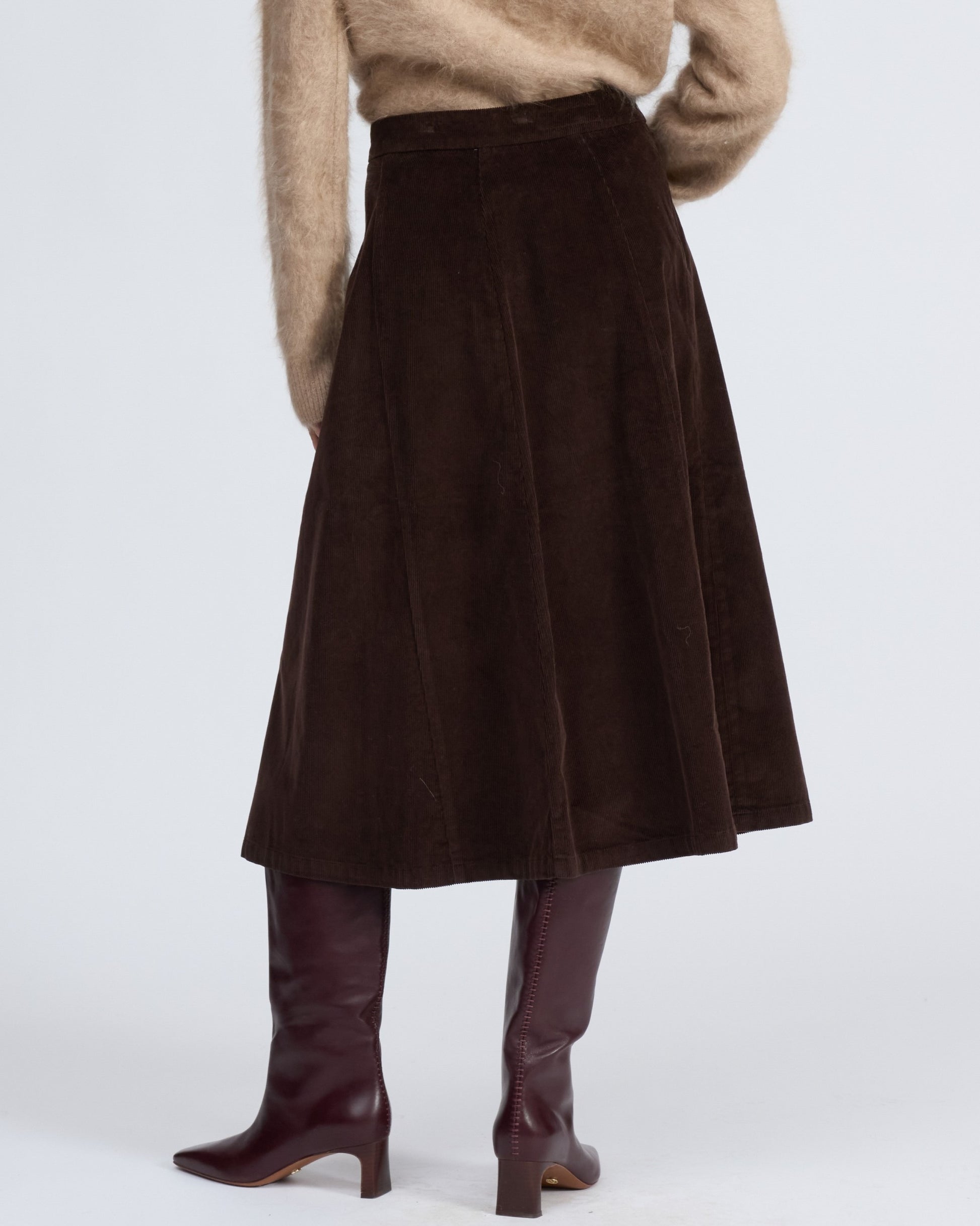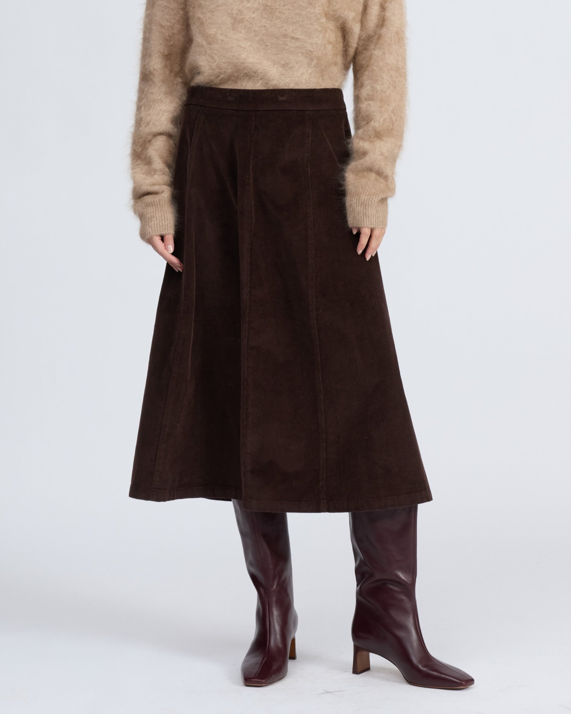 秋冬らしいコーデュロイ生地で作られたAラインスカートです。膝下の丈感も大人っぽく、ブーツとの相性も抜群です。
