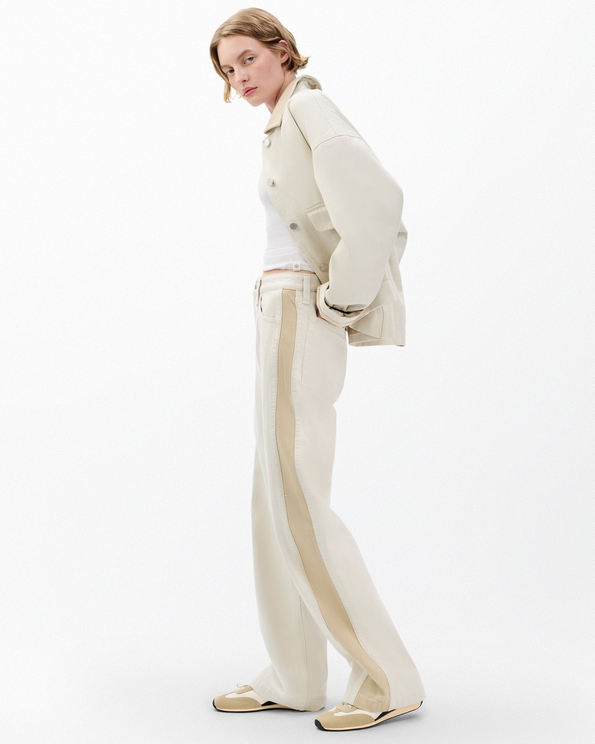 LOGANはヒップから太ももにかけてゆったりとしたフィット感です。ミッドライズですが、あえてサイズアップしローライズで履くことでリラックスした印象になります。