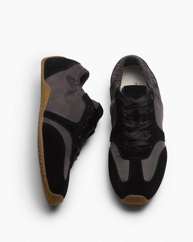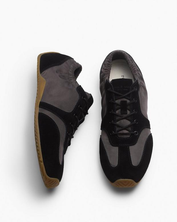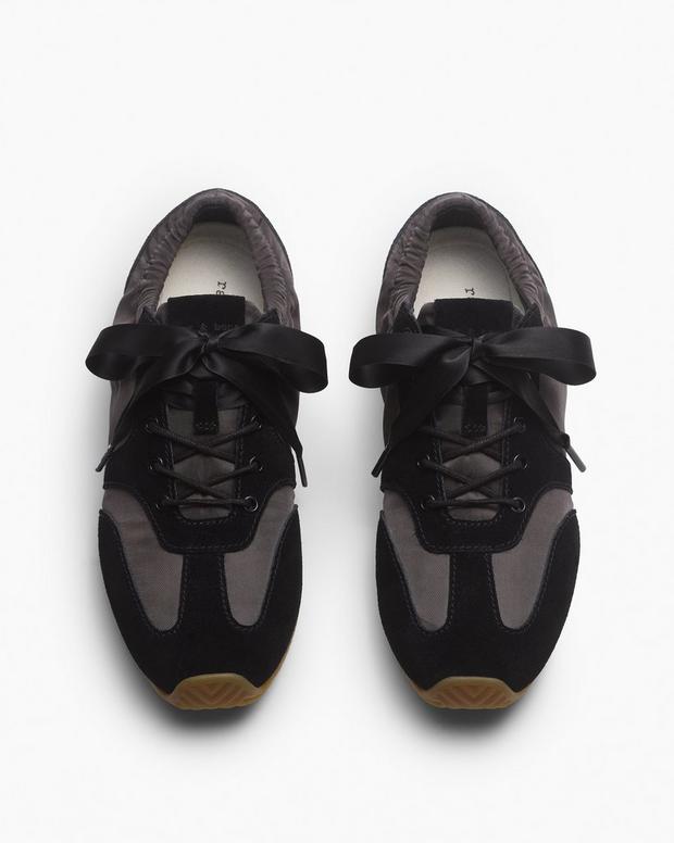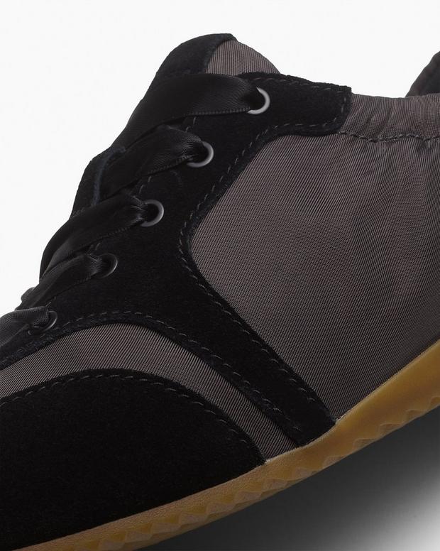 バレエシューズの軽さとスリムなランニングシューズの快適さを合わせたスニーカーです。履き口はゴム使用のため簡単に脱ぎ履きできます。