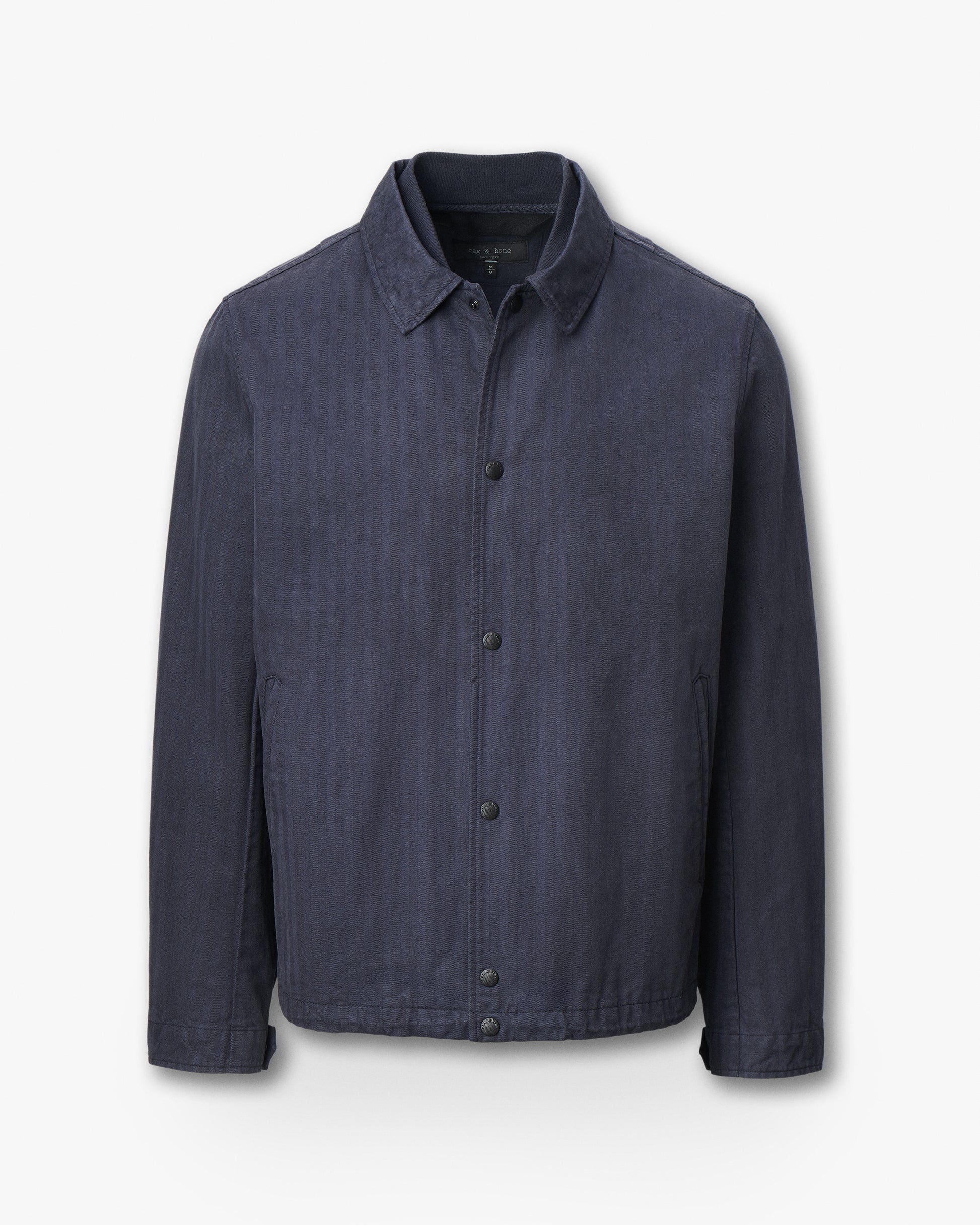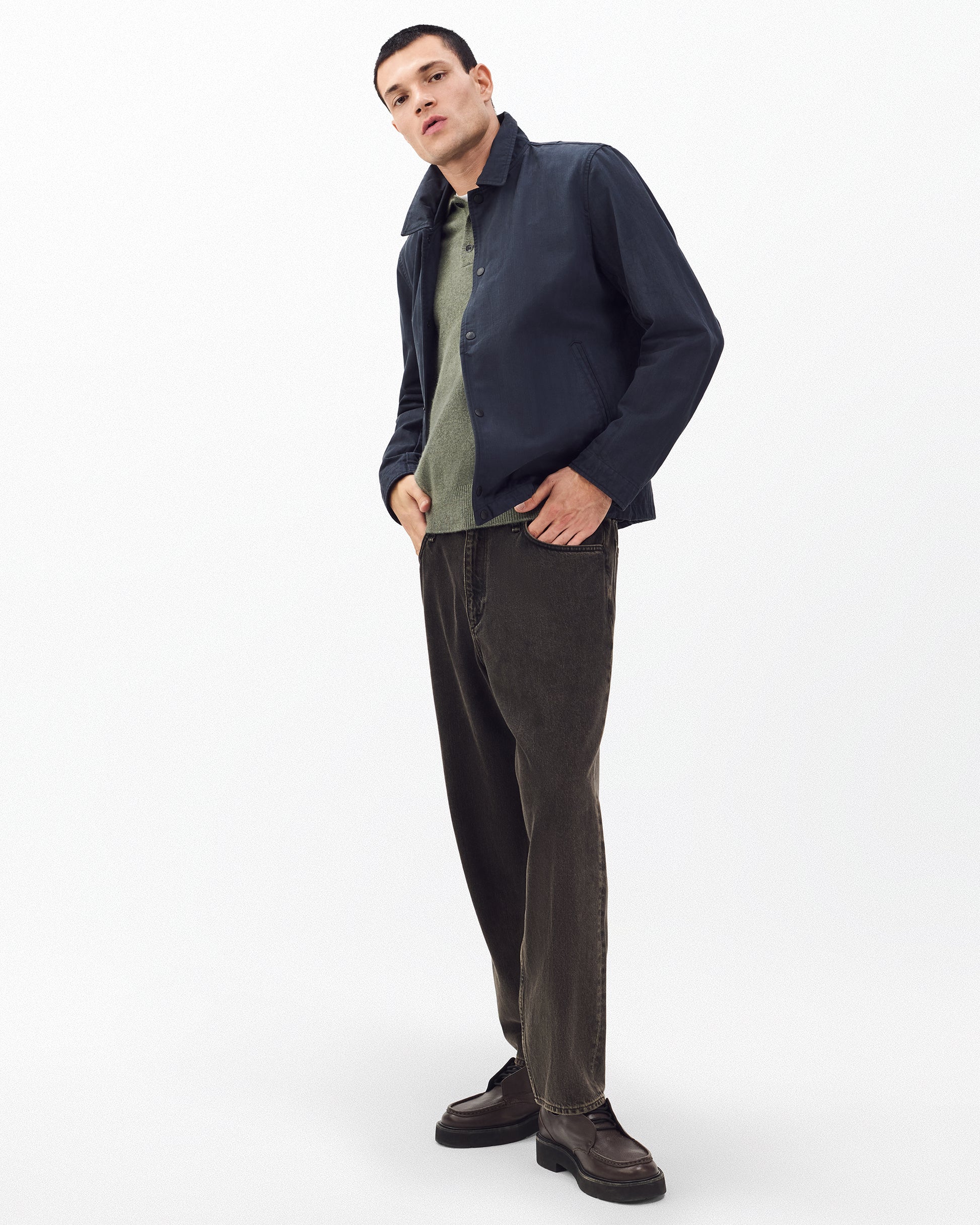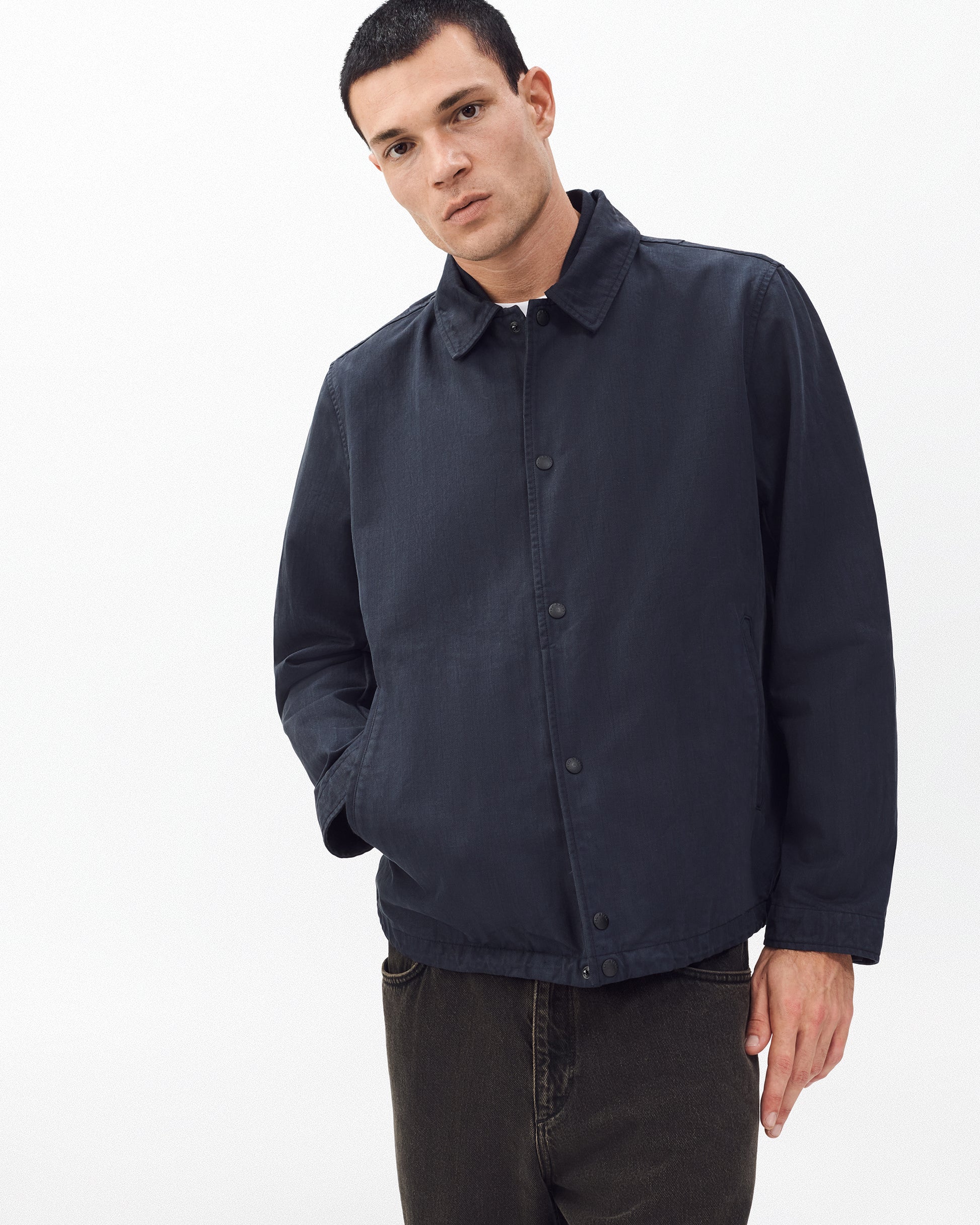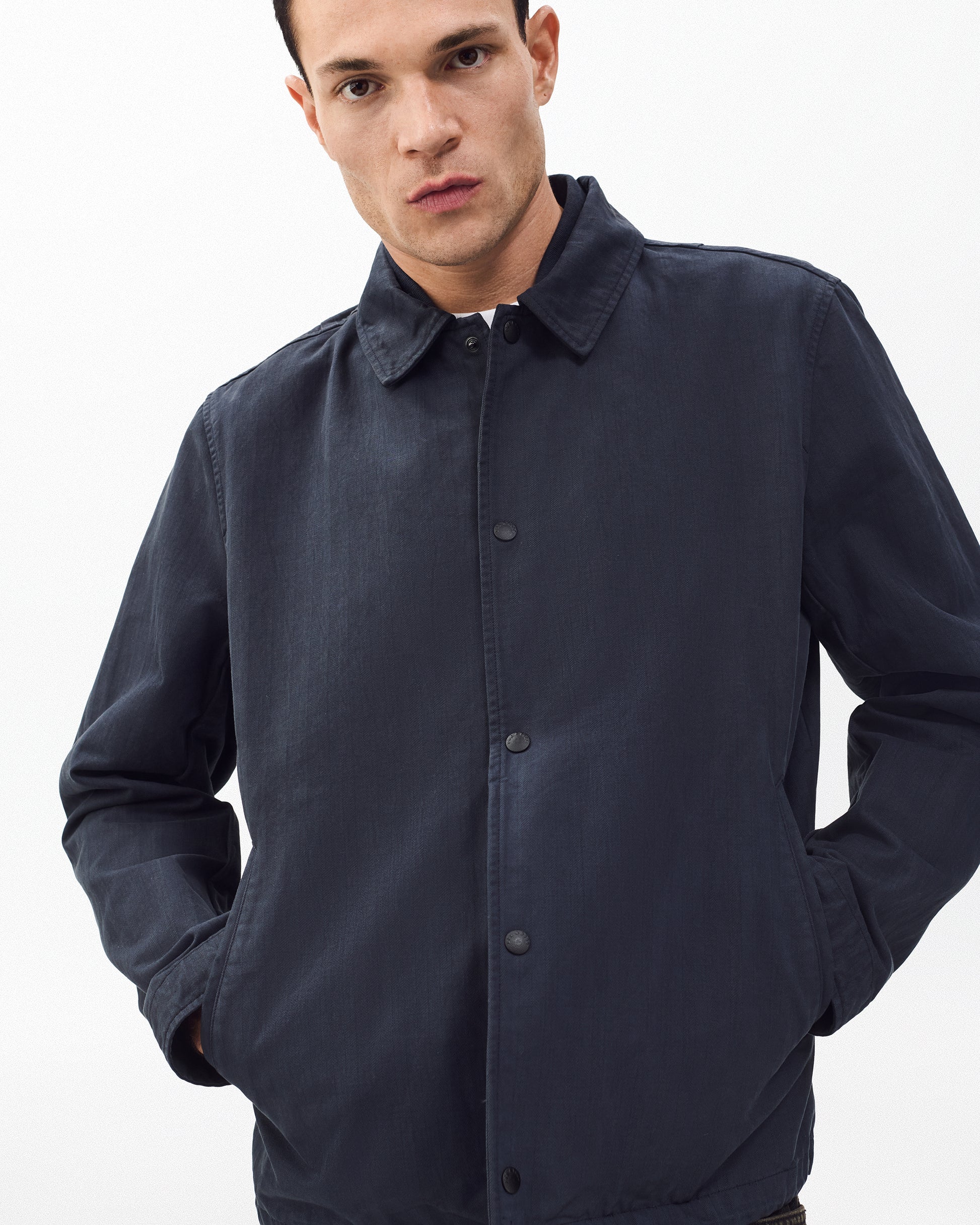 クラシックなコーチジャケットは、柔らかく驚くほど軽量なコットンウール混紡素材を使用。洗いがかかったさりげないヘリンボーン柄が魅力です。ダブルカラーがシルエットに独特の奥行きとディテールを与え、裾のコードでフィット感を微調整できます。首元までスナップボタンで留めればすっきりと、開いて着ればエフォートレスな着こなしも楽しめます。FIT 4 ストレートカーゴパンツとセットアップでも着ていただけます。