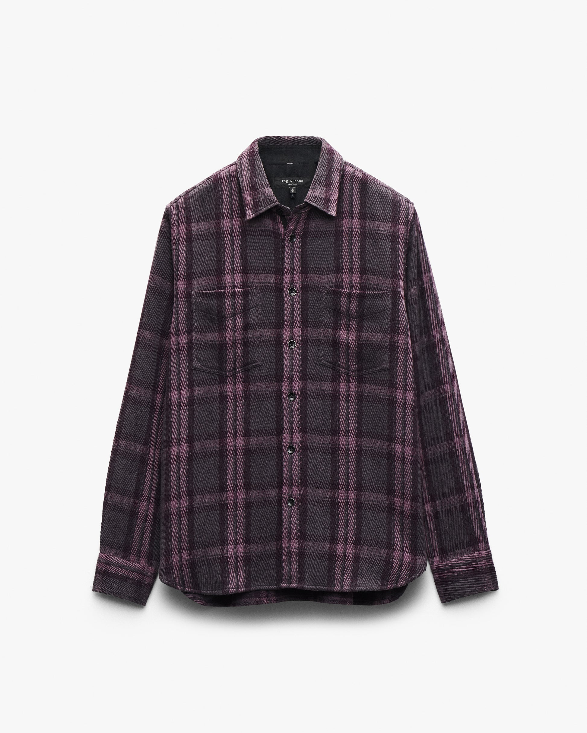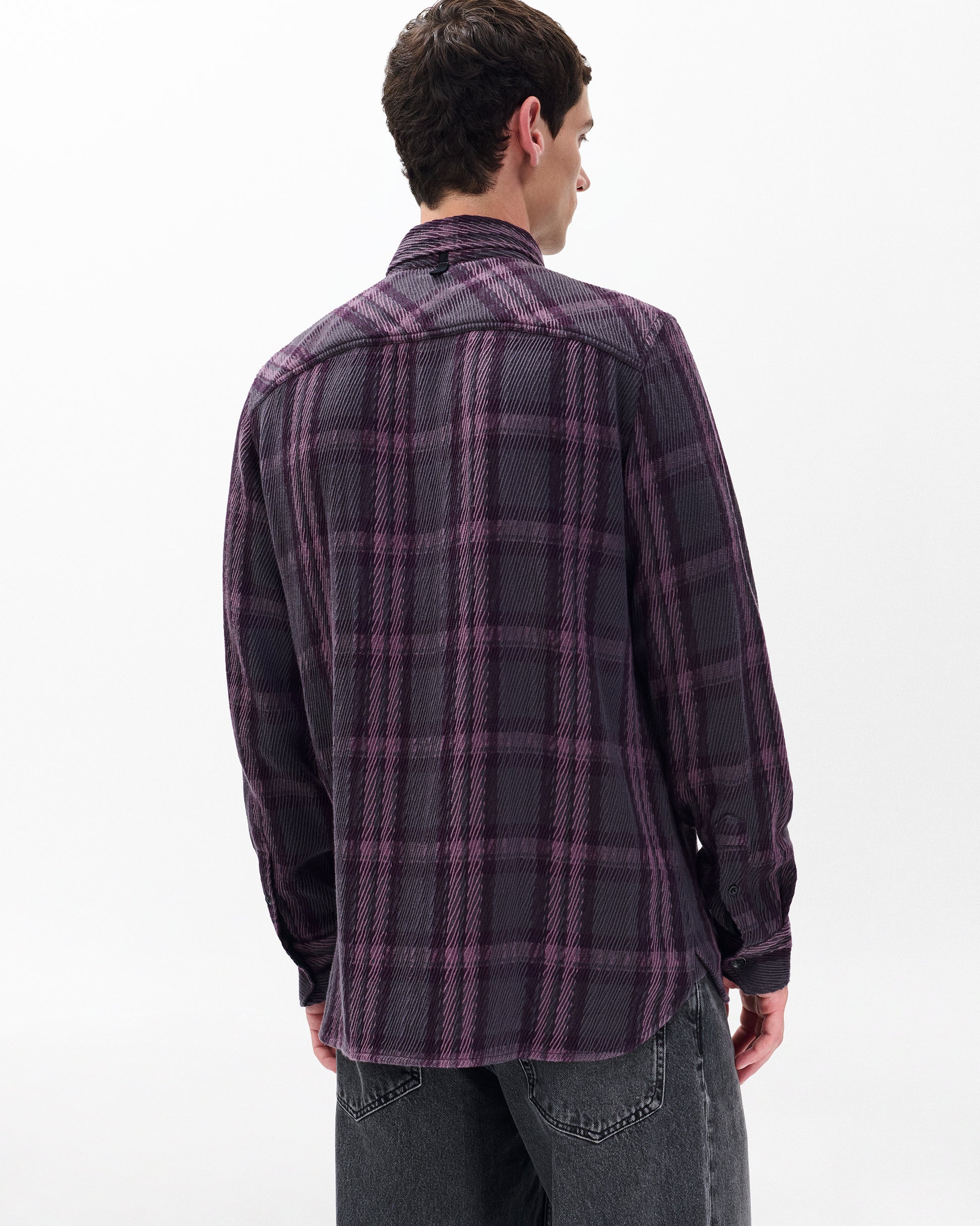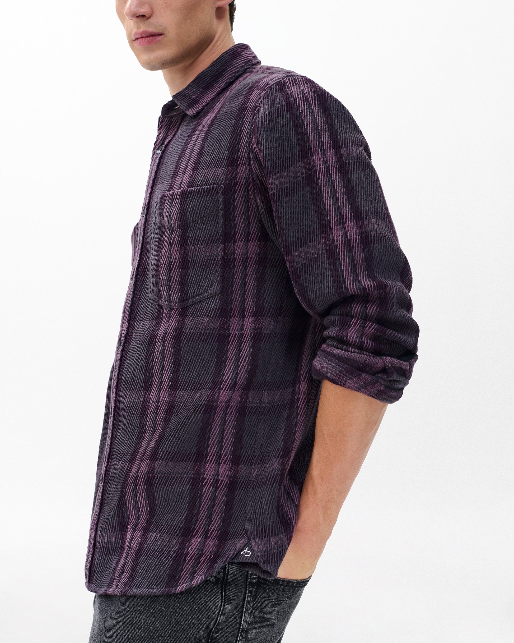 落ち着いたパープルのチェック柄が大人っぽさと遊び心を両立。起毛感のある素材は洗濯を繰り返していくと風合いの変化も楽しめます。一枚で着ても羽織ってもサマになる着回し力抜群のシャツです。