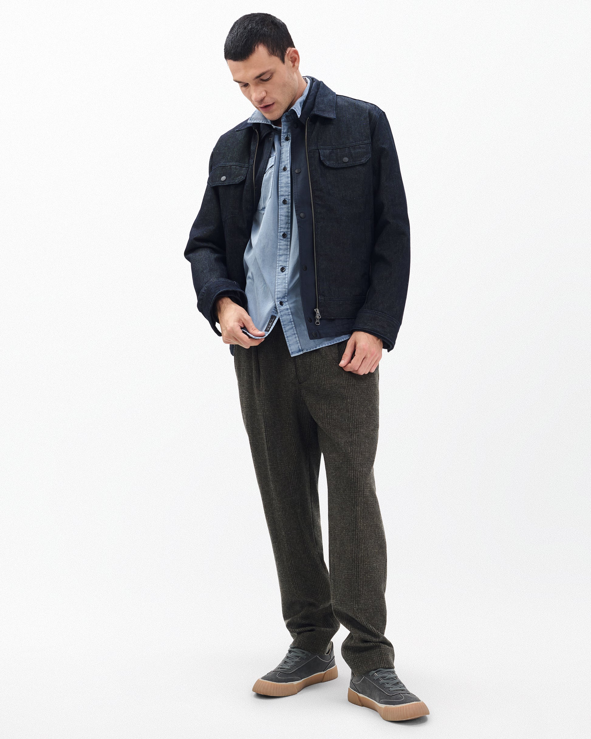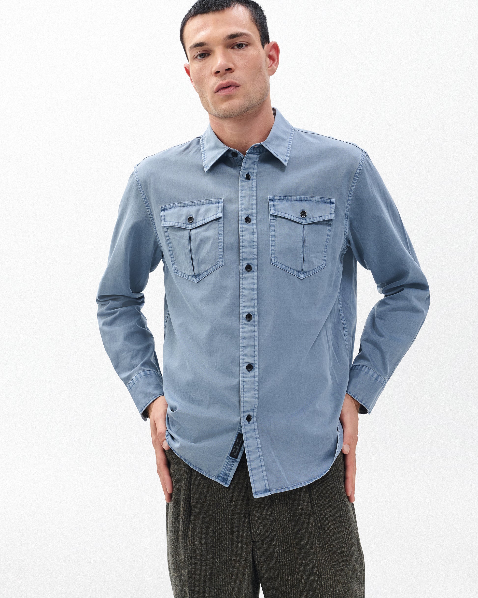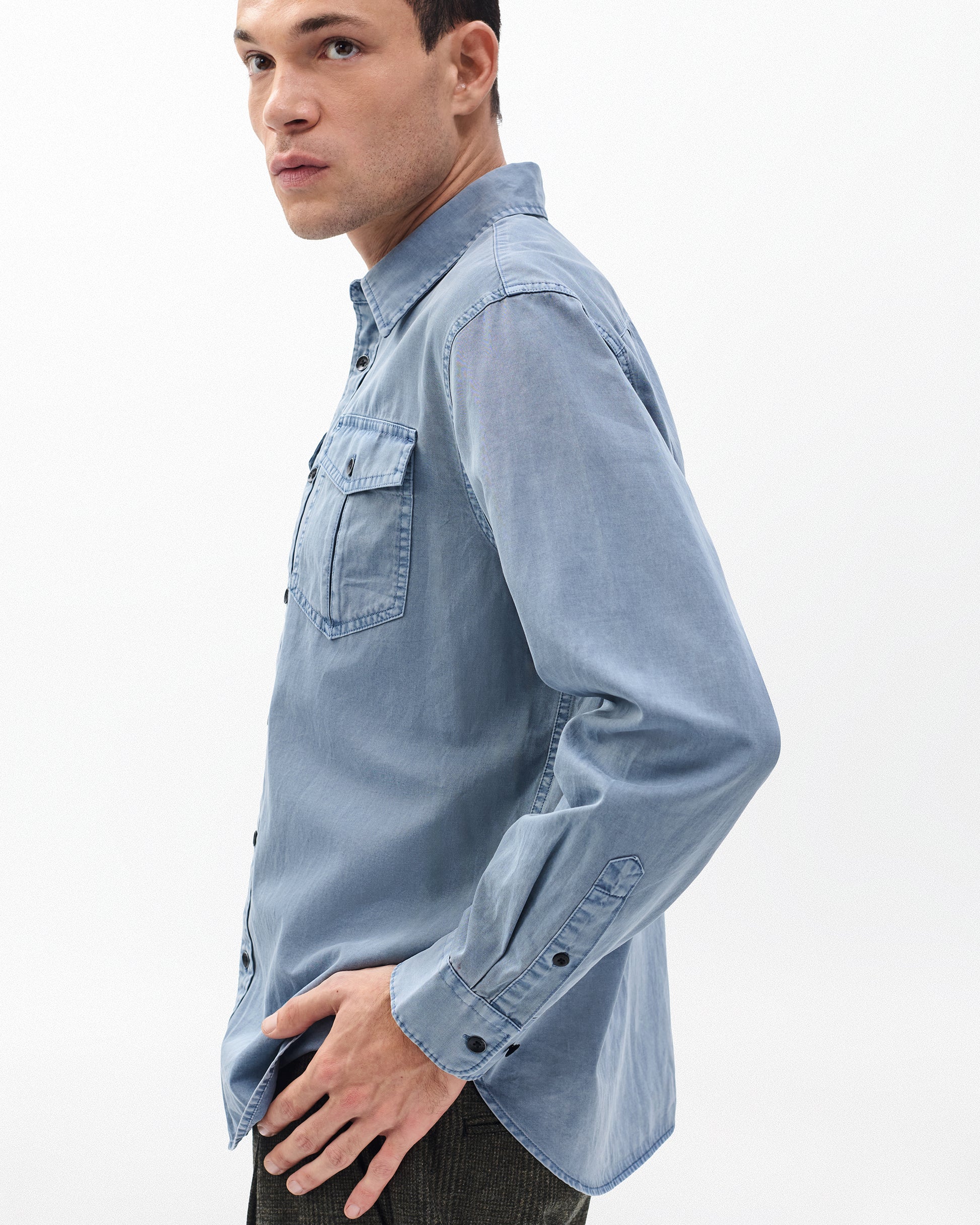 やわらかく軽い着心地、しなやかなドレープ感も楽しんでいただけるフェザーフェイトは、rag & bone の代表的なデニム生地です。