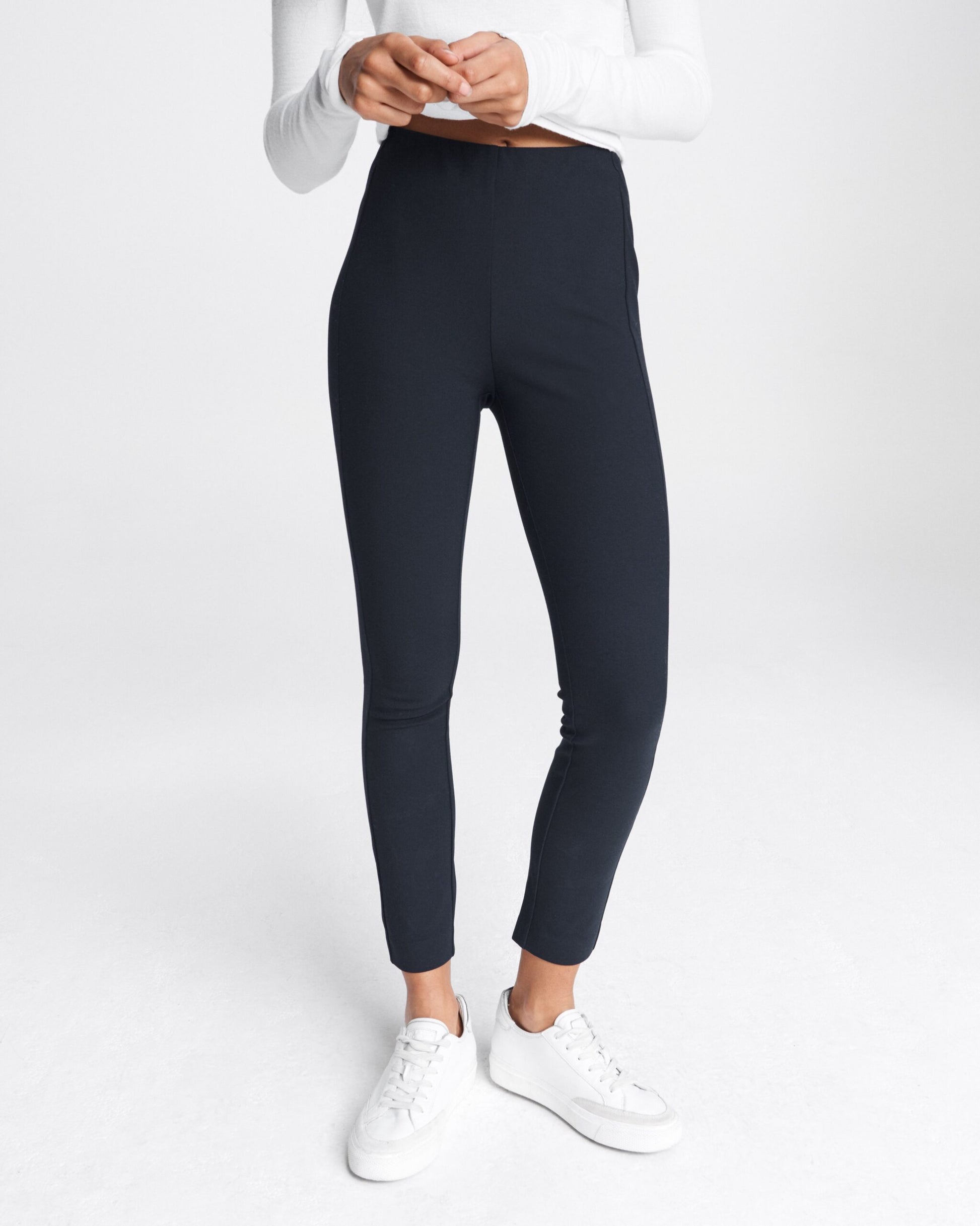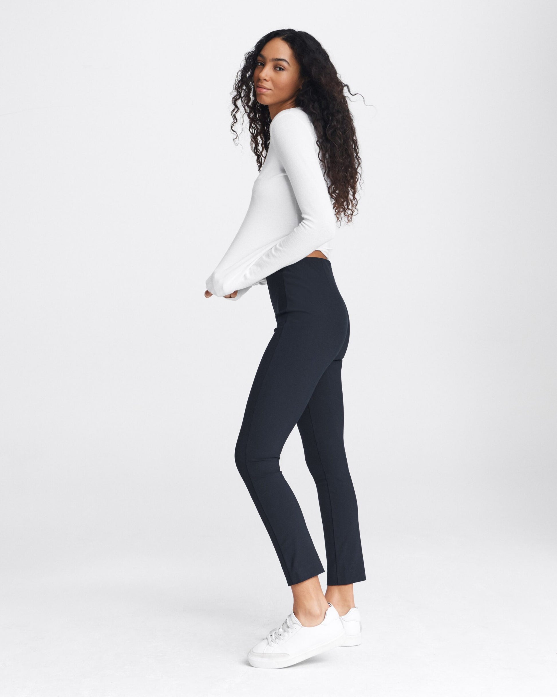 後ろ開きの見えないジッパークロージャー、伸縮性のあるウエストバンド、縦、横、斜めに伸びるレギンスの様な快適な穿き心地のハイウエストストレッチパンツです。