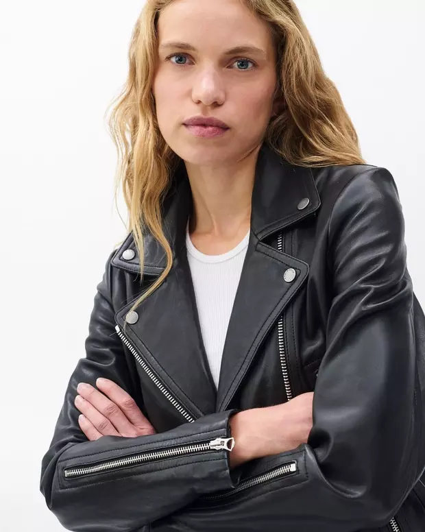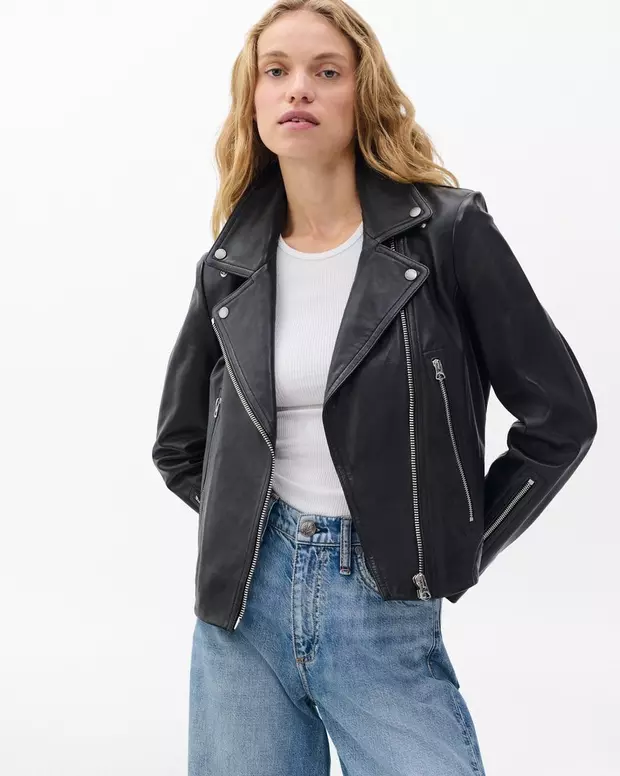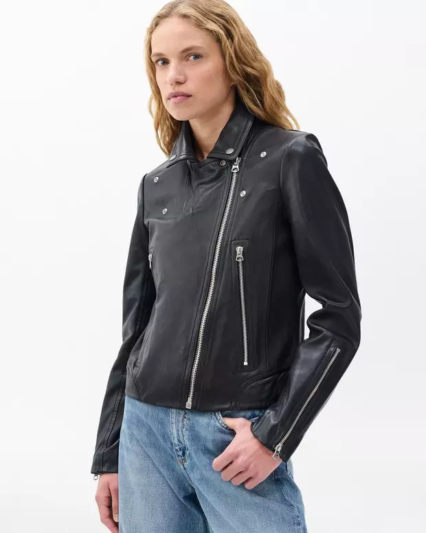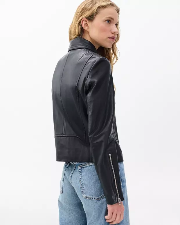 rag & bone のシグネチャーアイテム。手作業でワックス処理したラムレザーにrag & boneのアイコニックなジッパーとスナップが使われたスリムフィットのモトジャケット。
