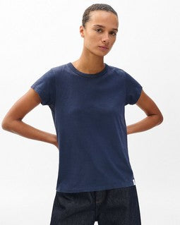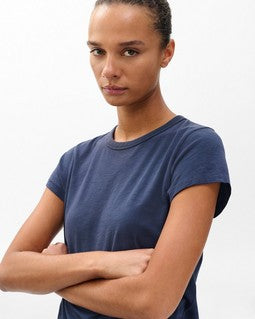 柔らかな質感の肌触りが心地良いスリムフィットの定番のクルーネックTEE。