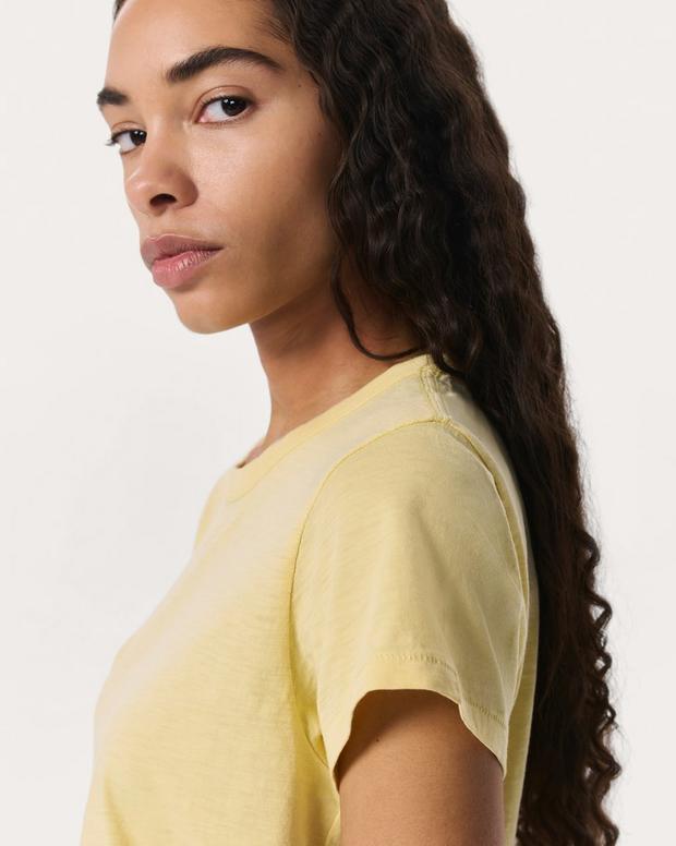 柔らかな質感の肌触りが心地良いスリムフィットの定番のクルーネックTEE。
