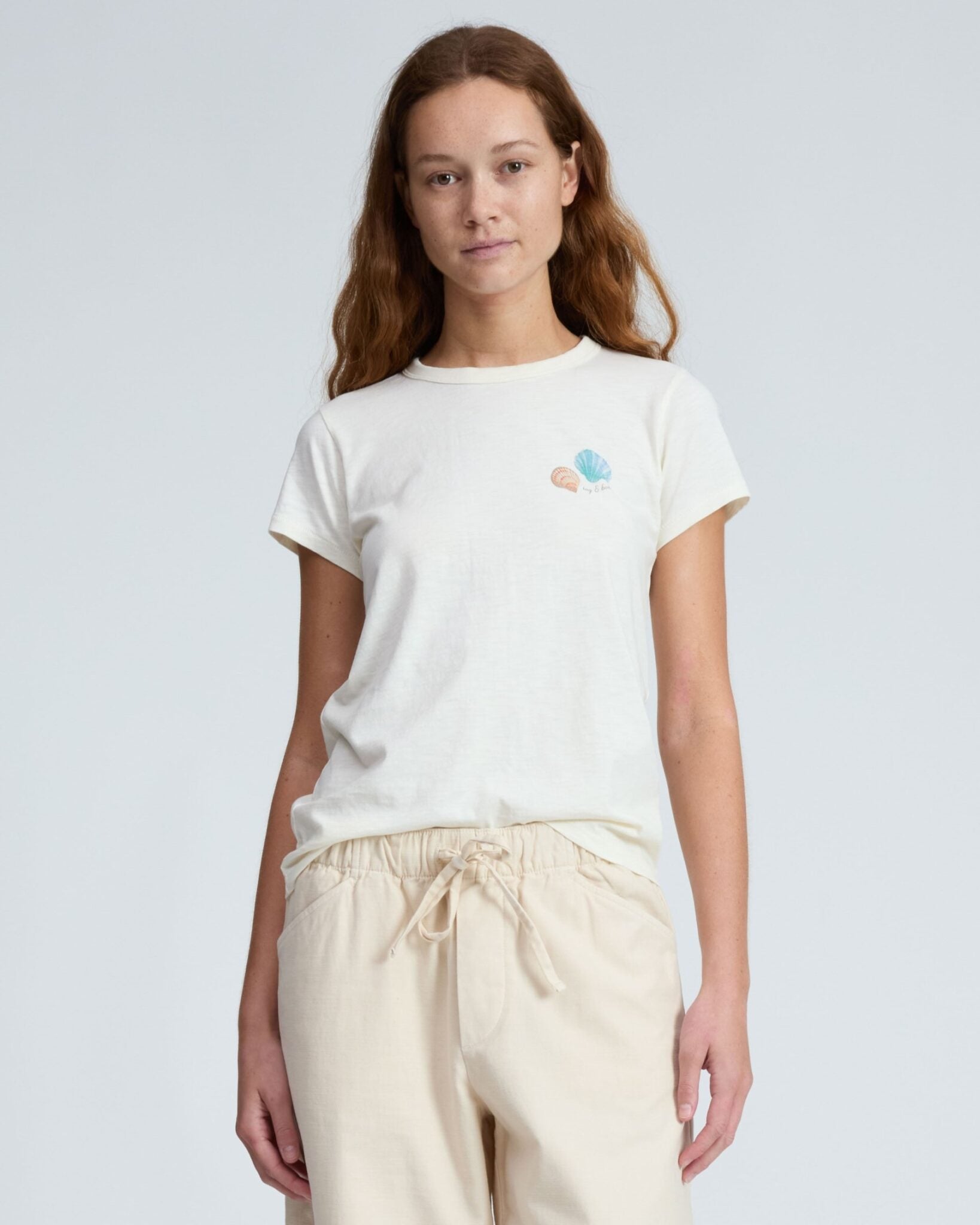 ・ペルー製ボディは100%オーガニックコットンを使用。rag & boneの定番のファブリックです。やわらかな肌当たりがやみつきになるTシャツです。左胸のカラフルな貝殻の下にはrag & bone のロゴが描かれています。