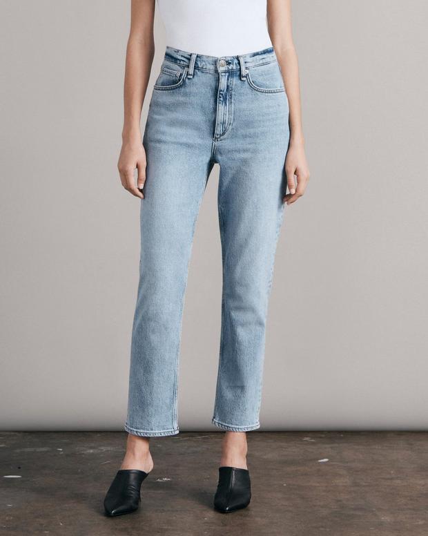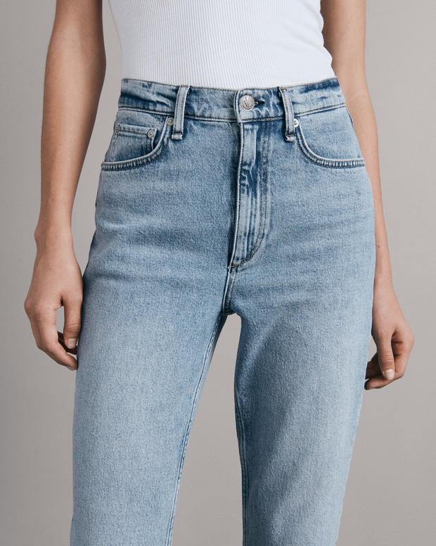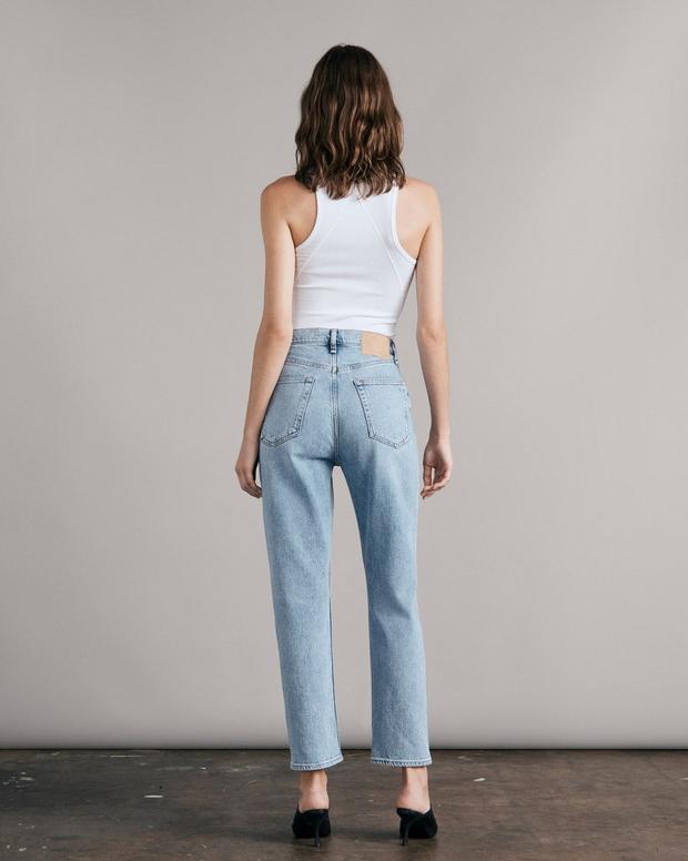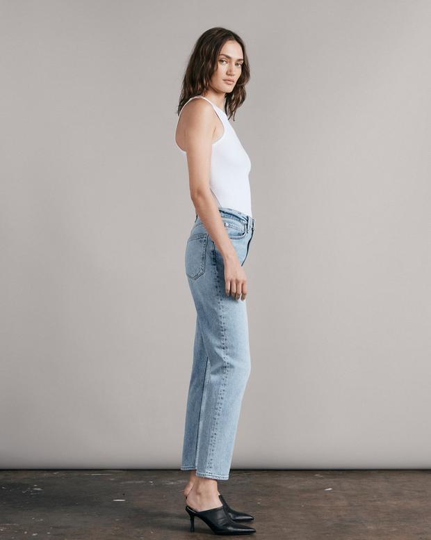 ・ライトインディゴウォッシュのハイライズスリムストレートデニム